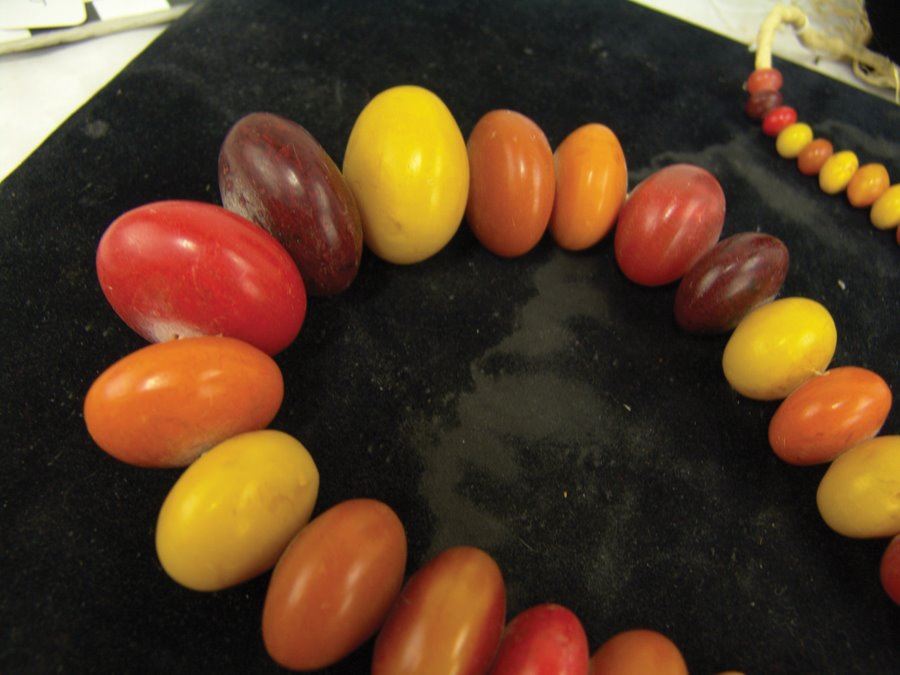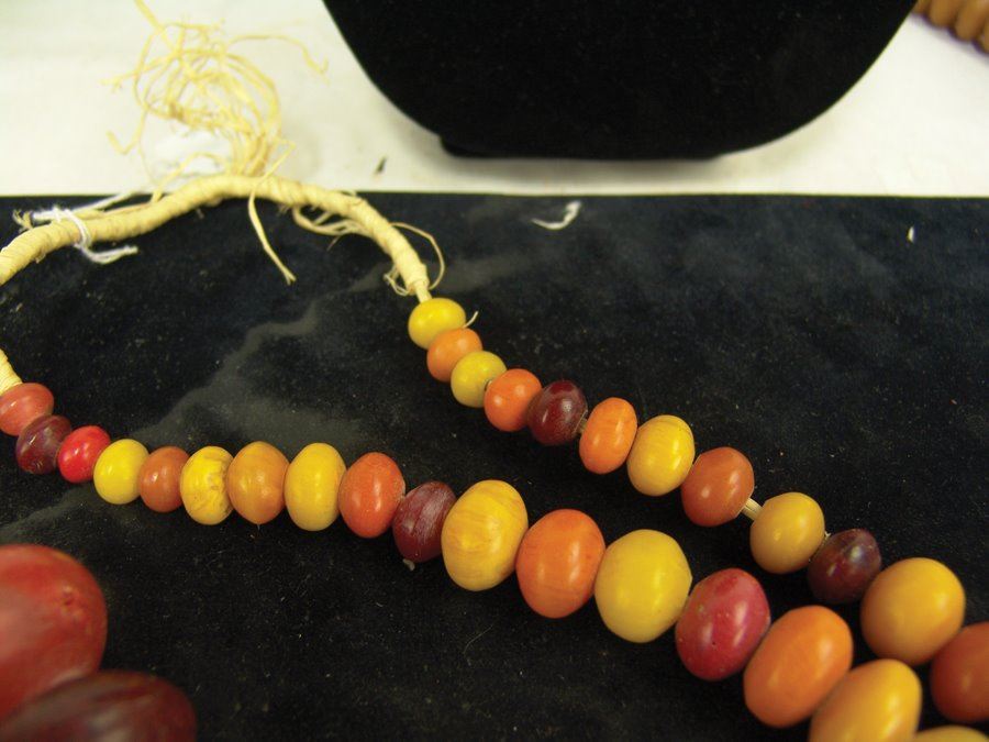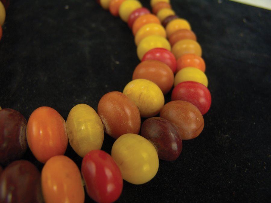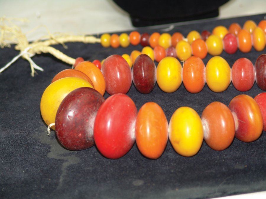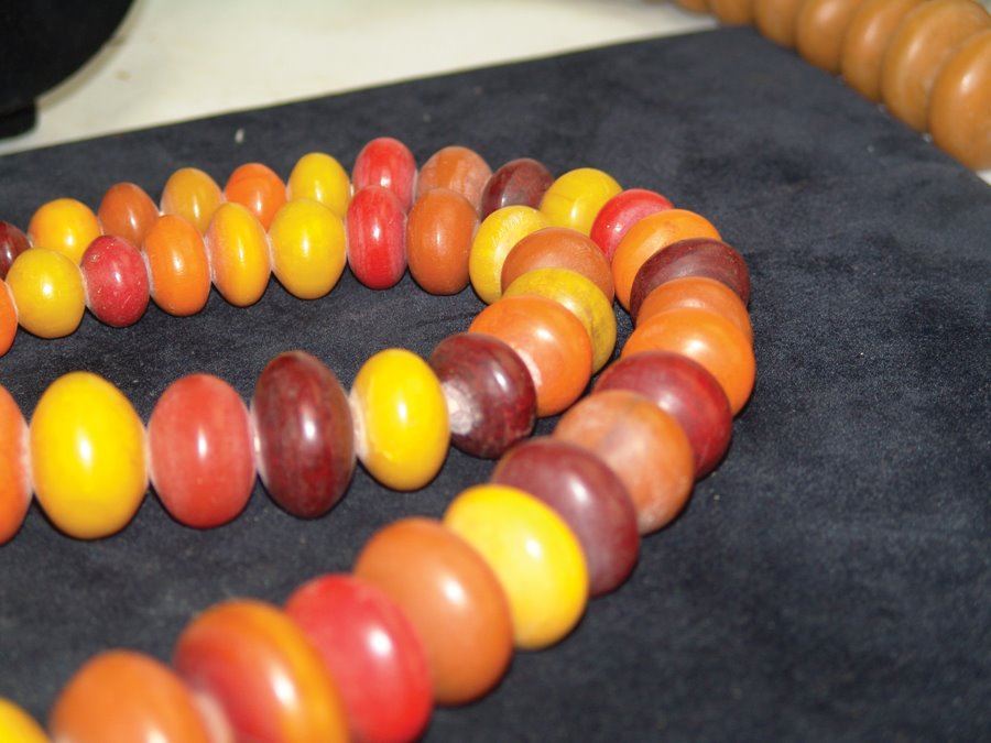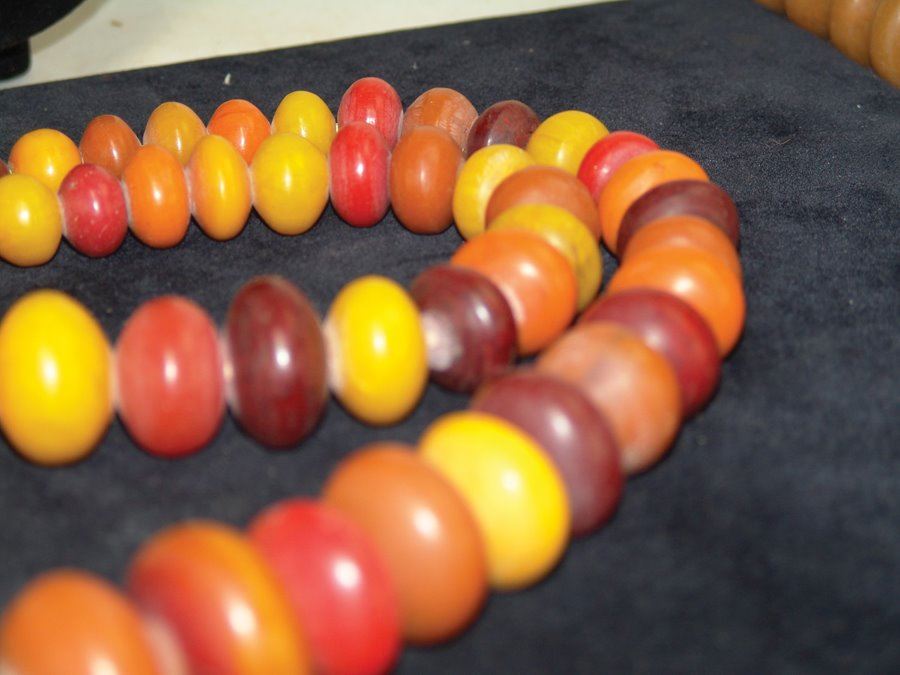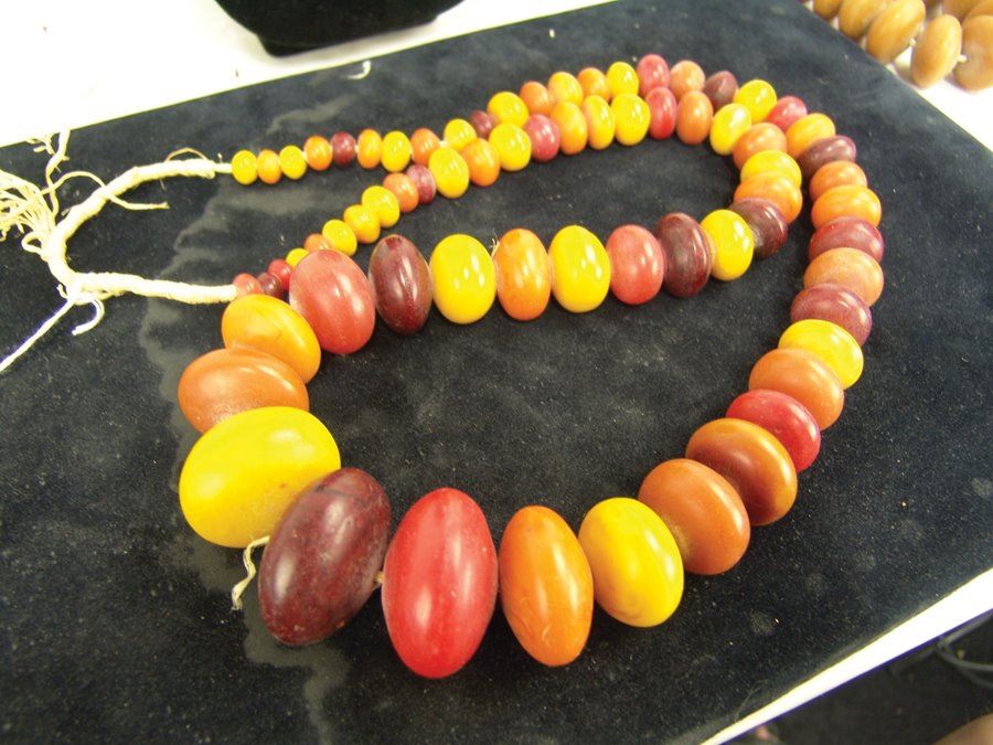 An exceptional, long (52"), strand of the rarest strand of multi colored beads (the only one's we've ever had) ranging in size from 2" x 1-3/8" down to 5/8" x 3/8." These are proudly worn piled on by African women as,Early/Mid 1900s,52"