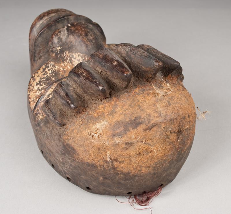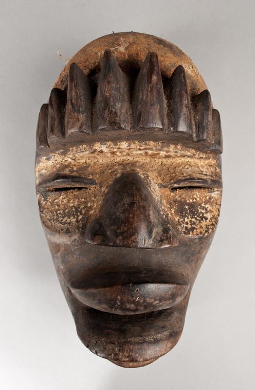 An early ceremonial mask, with early painted highlights, and bold carvings, 10.5"H, circa early 20th century.