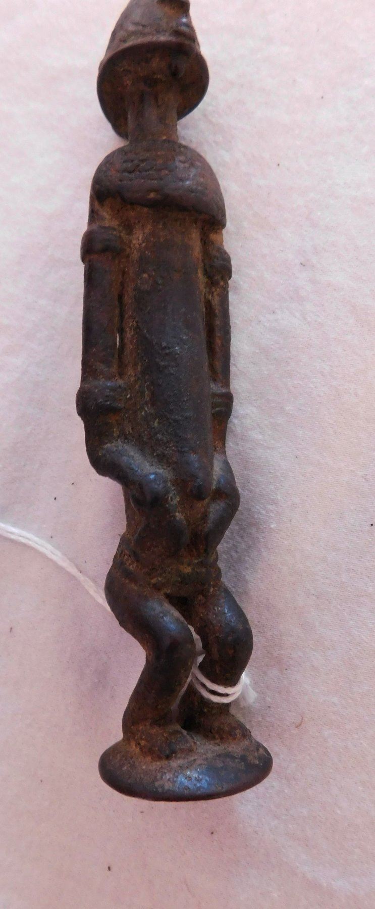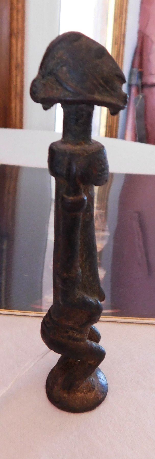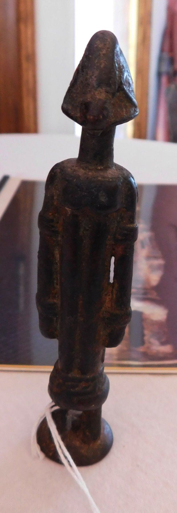 African Dogon Bronze Effigy Figure w/Report-COA, early historic period. Made of copper alloy, this bronze measures 5 1/8" x 1" x 1". Dogon, West Africa. Orenda Labs, Frank Aon authenticity report. Buy with confidence. Condition: Good patina, some wear, see images. Shipping: $40.00 w/insurance and signature, due to value.