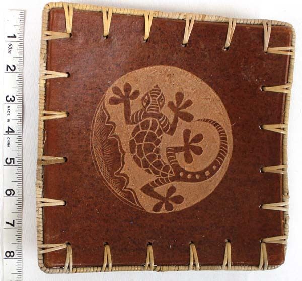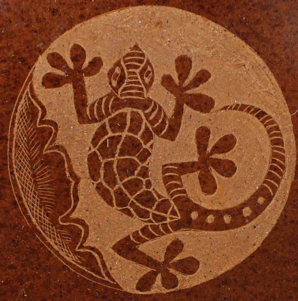 African Gecko Pottery Shallow Bowl, measures 8" x 8"