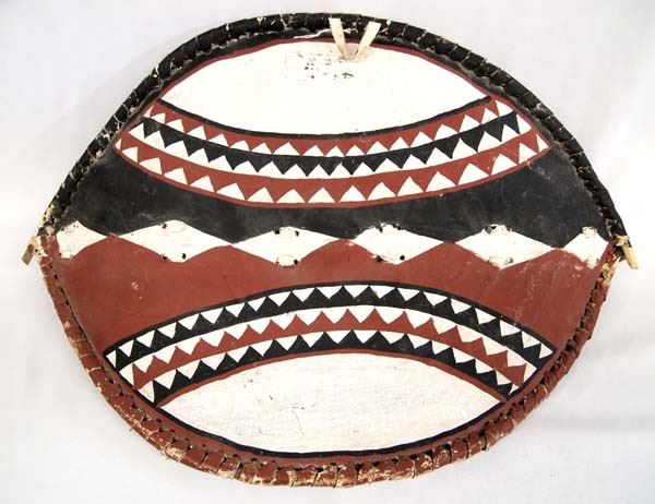 African Hand Painted Dance Shield, measures 25''L x 16''W