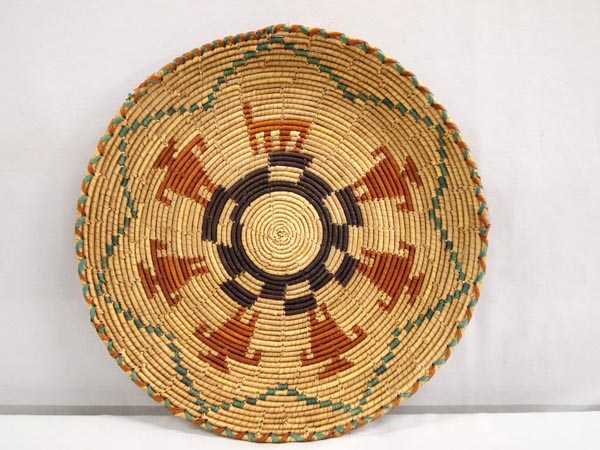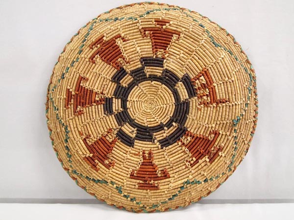 African Handwoven Basket Plate With Figures. Measures 12.5'' diameter x 1'' high. Buyers pay actual shipping and handling charges (see terms and conditions for more information.)