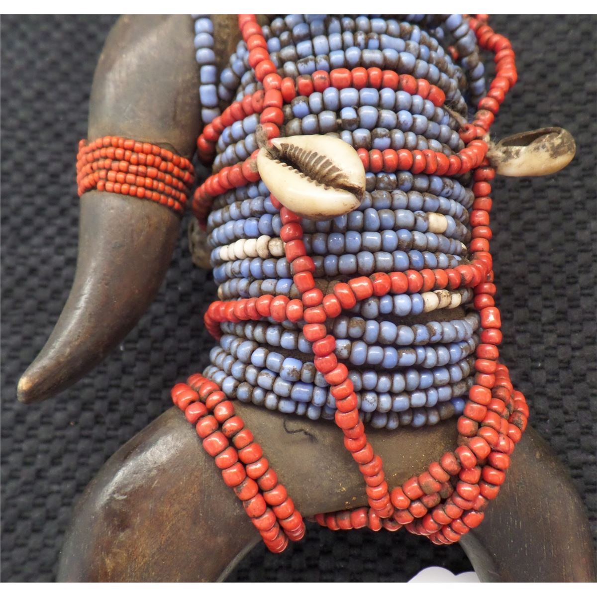 Minor wear and right arm is missing. This African Healing doll is made from wood, glass and cloth and measures 12x5x3 inches. Shipping: $28.00