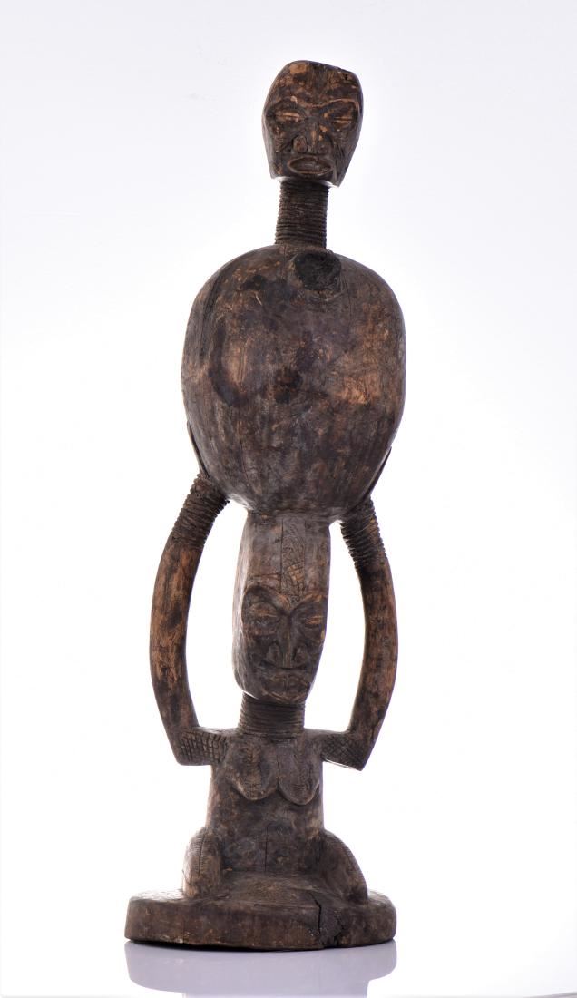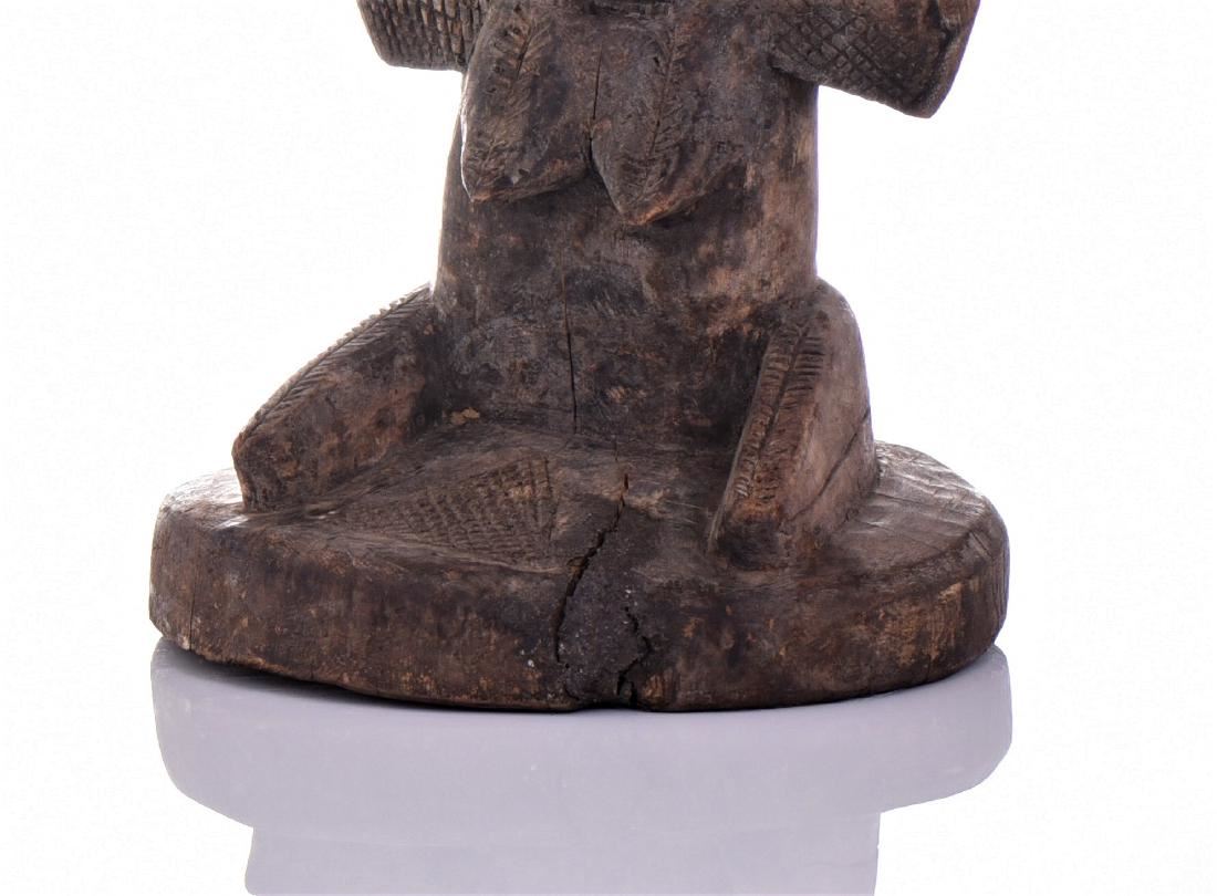 African Igbo Wood Power Figure Sculpture, Nigeria. Estimated more than 100 yrs old. African art is a term typically used for the art of Sub-Saharan Africa. A few of the most popular traditional African art was produced by the tribal people of the Fang, Dan, Baoule, Dogon, Senoufo, Makonde, Bambara, and San. Most African sculpture was historically in wood and other natural materials that have not survived from earlier than a few centuries ago; older pottery figures can be found from a number of areas. Masks are important elements in the art of many peoples, along with human figures, often highly stylized and in vast variety of styles. Sculpture is most common among "groups of settled cultivators in the areas drained by the Niger and Congo rivers. Direct images of deities are relatively infrequent, but masks in particular were made for religious ceremonies. Later West African cultures developed bronze casting for reliefs, like the Benin Bronzes, to decorate palaces and for highly naturalistic royal heads from around the Yoruba town of Ife, in terracotta as well as metal, from the 12th to 14th centuries. Akan gold weights are a form of small metal sculptures produced over the period 1400–1900; some apparently represent proverbs, contributing a narrative element rare in African sculpture; and royal regalia included impressive gold sculptured elements. Many West African figures are used in religious rituals and are often coated with materials placed on them for ceremonial offerings. Eastern Africans, in many areas shorter of large timber to carve, are known for Tinga Tinga paintings and Makonde sculptures. There is also tradition of producing textile art. Modern Zimbabwean sculptors in soapstone have achieved considerable international success. Southern Africa's oldest known clay figures date from 400 to 600 AD and have cylindrical heads with a mixture of human and animal features. (Wikipedia) Size and/or Weight: See Measurement Photo. (Photos Represent The Lot Condition. Read T&C's)