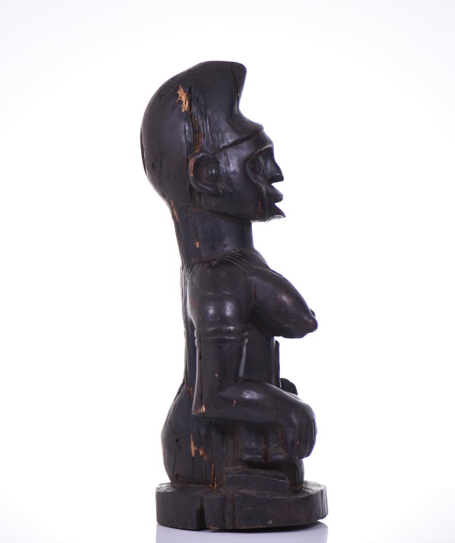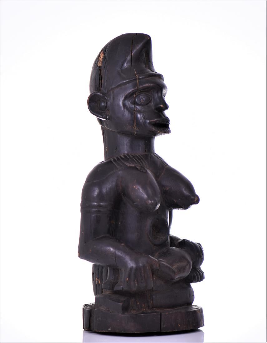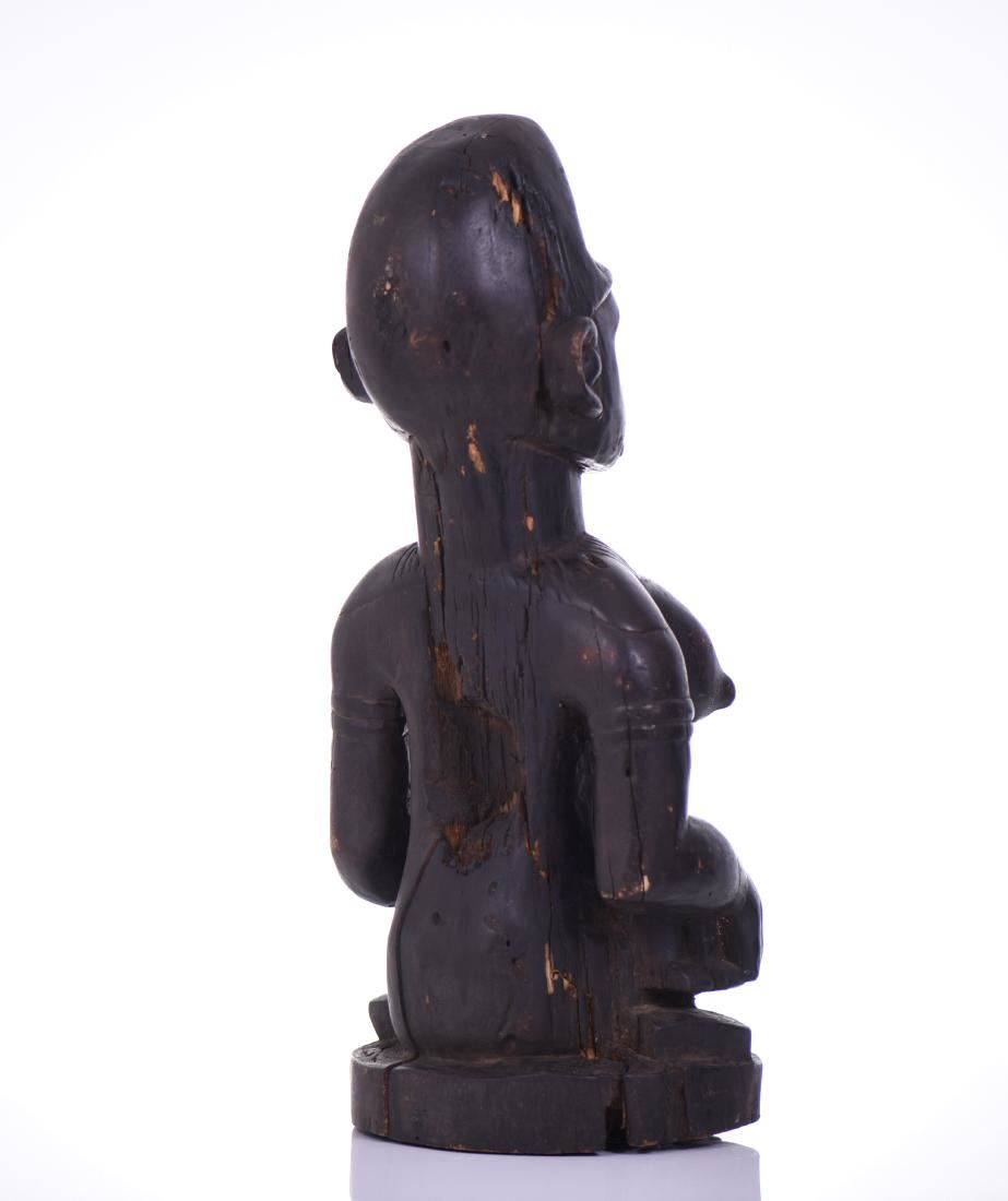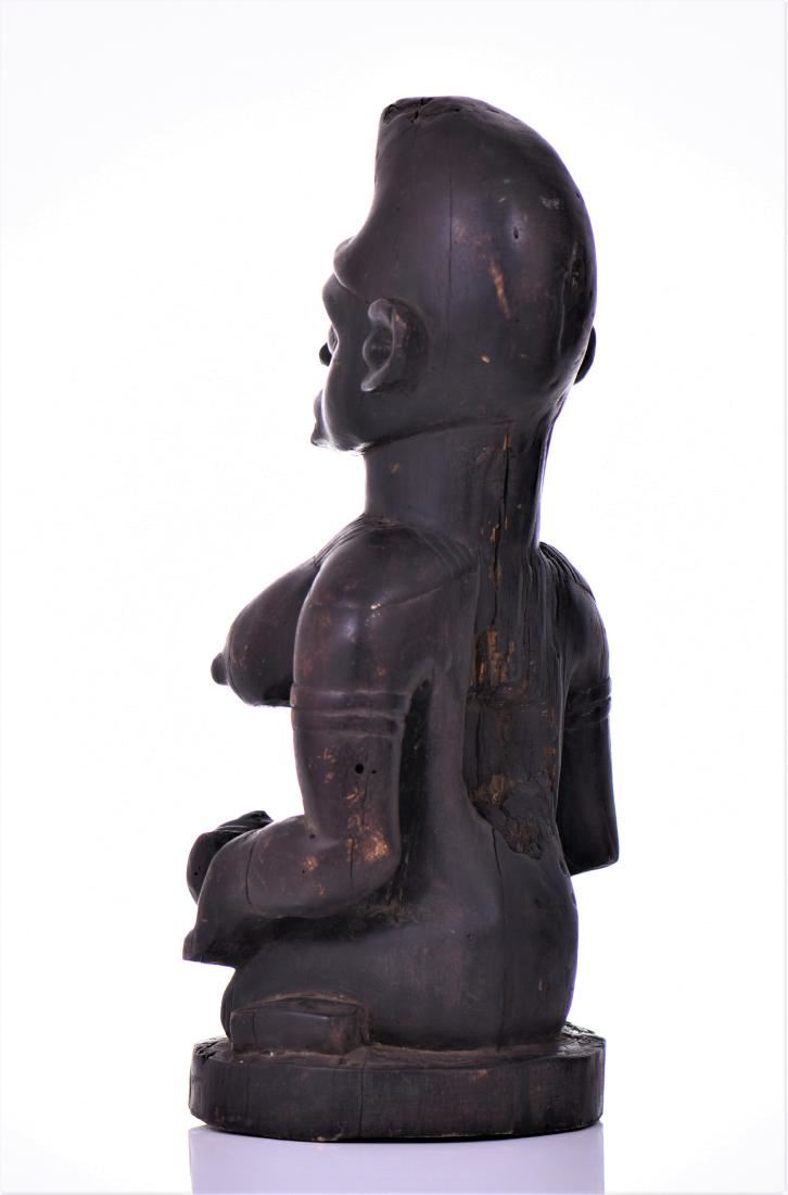 African Kongo Yombe Maternity Figure, Congo. A particularly sensitive tradition of maternity sculpture emerged in the last millennium among the peoples of the Kongo kingdom in the western Congo. Wood sculptures known as phemba were created for use in association with women's cults, and found their highest expression among the Kongo-Yombe subgroup. Provenance: Ethnographic Tribal Museum Collection (See Auction Catalog Description). Some Lots Have Been On Exhibition And Have A Custom Made Metal Stand Specifically Designed To Fit The Work. Estimated more than 75 yrs old. (Pangaea Auctions) Size and/or Weight: See Measurement Photo. (Photos Represent The Lot Condition.)