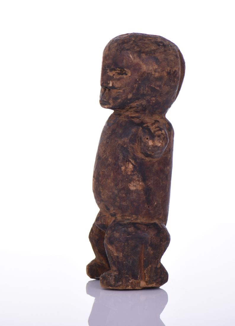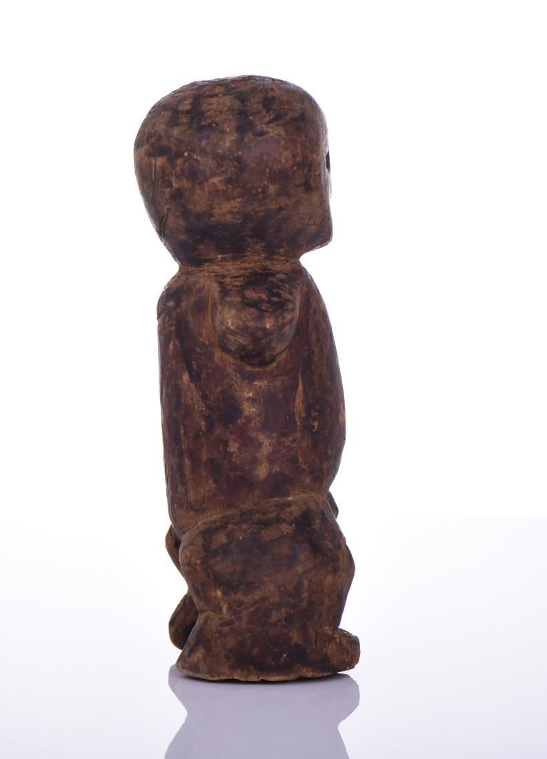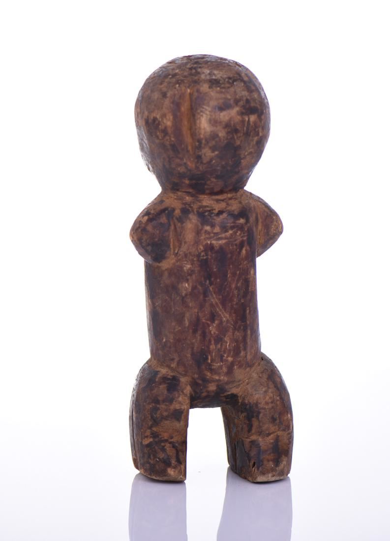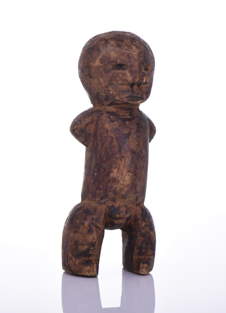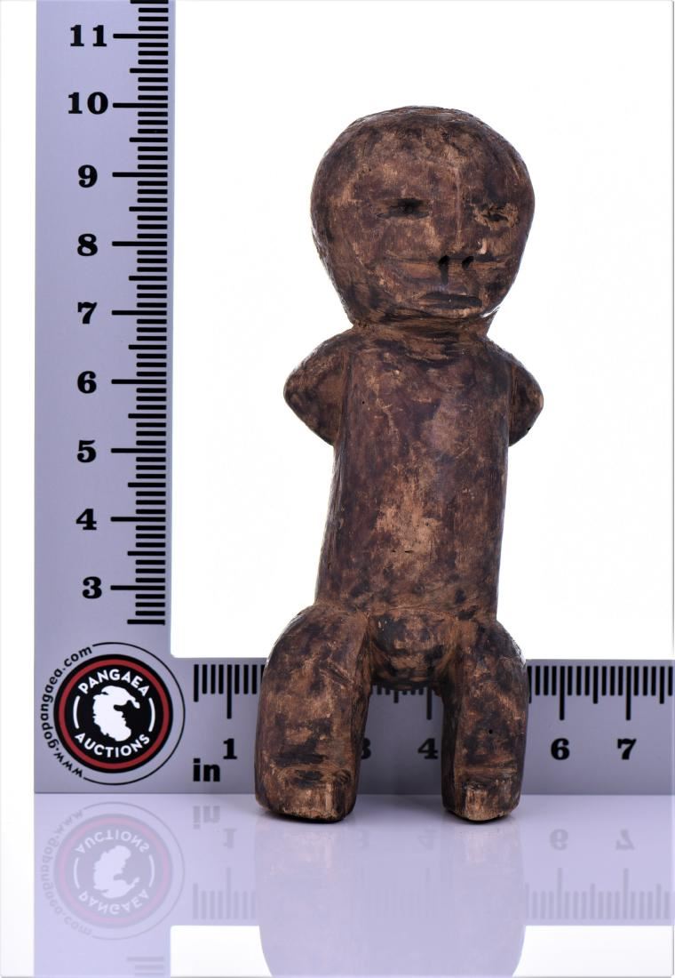 African Lega Wood Figure, Congo. Provenance: Ethnographic Tribal Museum Collection (See Auction Catalog Description). Some Lots Have Been On Exhibition And Have A Custom Made Metal Stand Specifically Designed To Fit The Work. Estimated more than 100 yrs old. African art is a term typically used for the art of Sub-Saharan Africa. A few of the most popular traditional African art was produced by the tribal people of the Fang, Dan, Baoule, Dogon, Senoufo, Makonde, Bambara, and San. Most African sculpture was historically in wood and other natural materials that have not survived from earlier than a few centuries ago; older pottery figures can be found from a number of areas. Masks are important elements in the art of many peoples, along with human figures, often highly stylized and in vast variety of styles. Sculpture is most common among "groups of settled cultivators in the areas drained by the Niger and Congo rivers. Direct images of deities are relatively infrequent, but masks in particular were made for religious ceremonies. Later West African cultures developed bronze casting for reliefs, like the Benin Bronzes, to decorate palaces and for highly naturalistic royal heads from around the Yoruba town of Ife, in terracotta as well as metal, from the 12th to 14th centuries. Akan gold weights are a form of small metal sculptures produced over the period 1400–1900; some apparently represent proverbs, contributing a narrative element rare in African sculpture; and royal regalia included impressive gold sculptured elements. Many West African figures are used in religious rituals and are often coated with materials placed on them for ceremonial offerings. Eastern Africans, in many areas shorter of large timber to carve, are known for Tinga Tinga paintings and Makonde sculptures. There is also tradition of producing textile art. Modern Zimbabwean sculptors in soapstone have achieved considerable international success. Southern Africa's oldest known clay figures date from 400 to 600 AD and have cylindrical heads with a mixture of human and animal features. (Wikipedia) Size and/or Weight: See Measurement Photo. (Photos Represent The Lot Condition.)