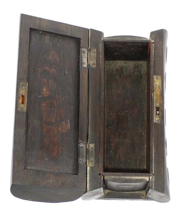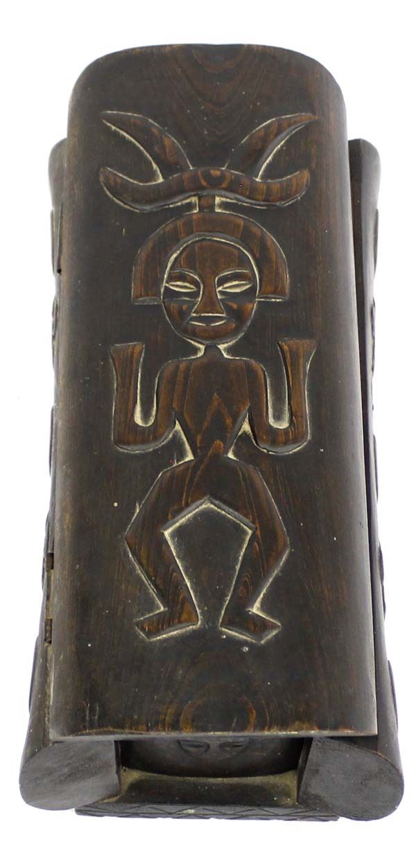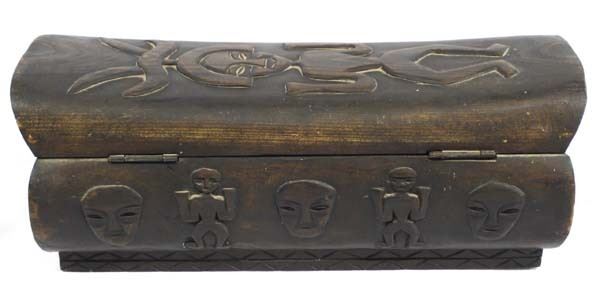 African Lidded Carved Wood Box, measures 5.5'' x 12'', nice thick wood exquisitely carved