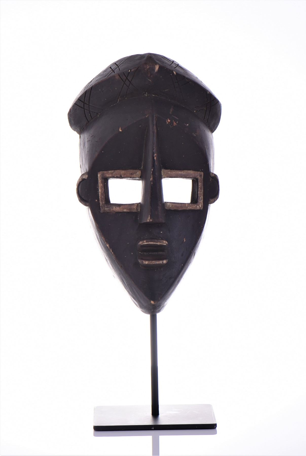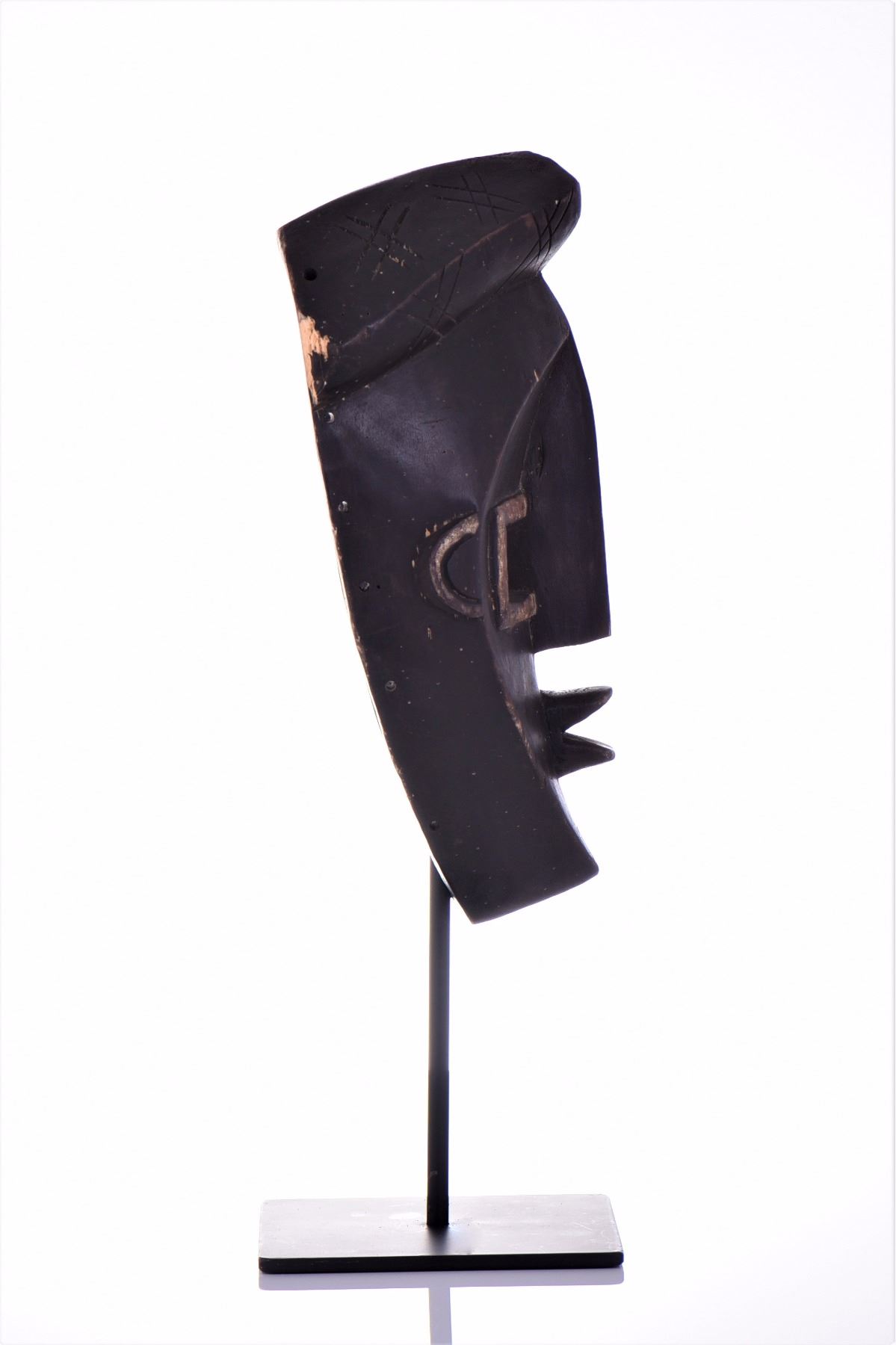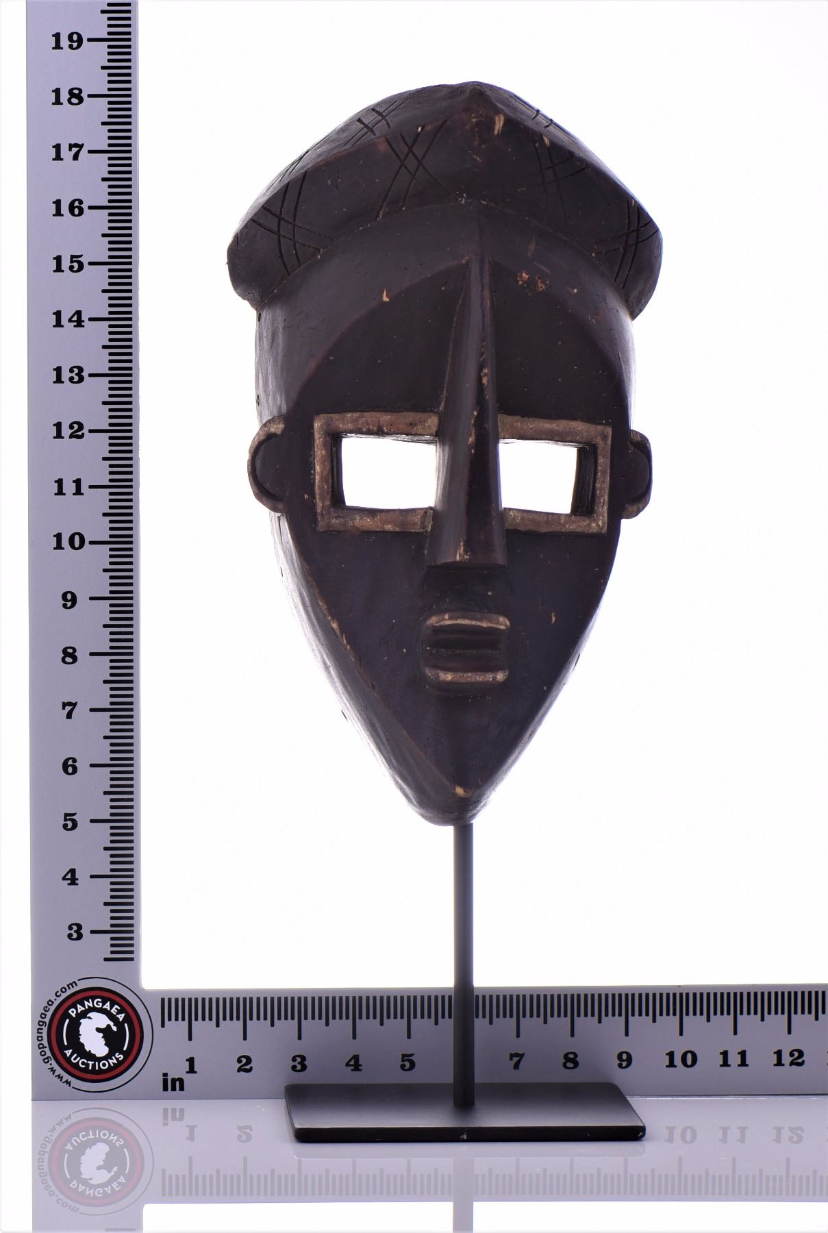 African Lulua Lwalwa Circumcision Mask, Congo. Heavily Danced Inside Wear. Provenance: Ethnographic Tribal Museum Collection (See Auction Catalog Description). Some Lots Have Been On Exhibition, Stand Not Included. Estimated more than 50 yrs. old. African art is a term typically used for the art of Sub-Saharan Africa. A few of the most popular traditional African art was produced by the tribal people of the Fang, Dan, Baoule, Dogon, Senufo, Makonde, Bambara, and San. Most African sculpture was historically in wood and other natural materials that have not survived from earlier than a few centuries ago; older pottery figures can be found from a number of areas. Masks are important elements in the art of many peoples, along with human figures, often highly stylized and in vast variety of styles. Sculpture is most common among "groups of settled cultivators in the areas drained by the Niger and Congo rivers. Direct images of deities are relatively infrequent, but masks in particular were made for religious ceremonies. Later West African cultures developed bronze casting for reliefs, like the Benin Bronzes, to decorate palaces and for highly naturalistic royal heads from around the Yoruba town of Ife, in terracotta as well as metal, from the 12th to 14th centuries. Akan gold weights are a form of small metal sculptures produced over the period 1400–1900; some apparently represent proverbs, contributing a narrative element rare in African sculpture; and royal regalia included impressive gold sculptured elements. Many West African figures are used in religious rituals and are often coated with materials placed on them for ceremonial offerings. Eastern Africans, in many areas shorter of large timber to carve, are known for Tinga Tinga paintings and Makonde sculptures. There is also tradition of producing textile art. Modern Zimbabwean sculptors in soapstone have achieved considerable international success. Southern Africa's oldest known clay figures date from 400 to 600 AD and have cylindrical heads with a mixture of human and animal features. (Wikipedia) Size and/or Weight: See Measurement Photo. (Photos Represent The Lot Condition, Pangaea Auctions)