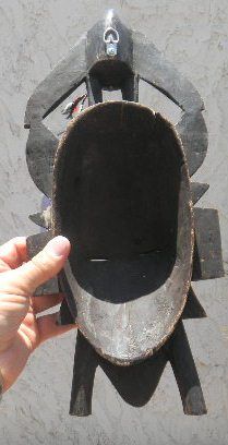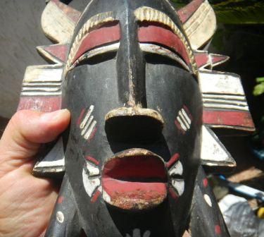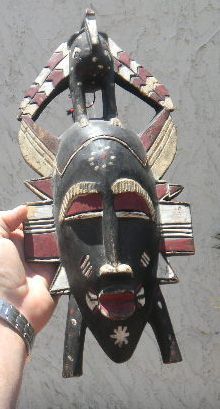African Mask Painted wood 17 x 7 x 4 inches. Possible Baule Tribe, Circa 1930. Good Condition