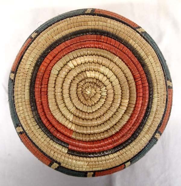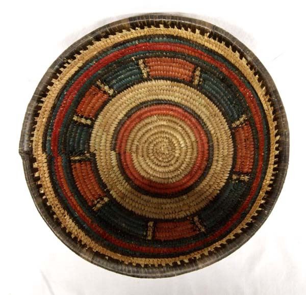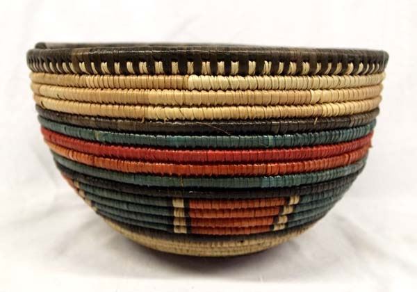 From the Lucille Frazier Estate, we have an African Multi-Colored Coiled Basket, measures 6''H x 9.5''D, pretty colors