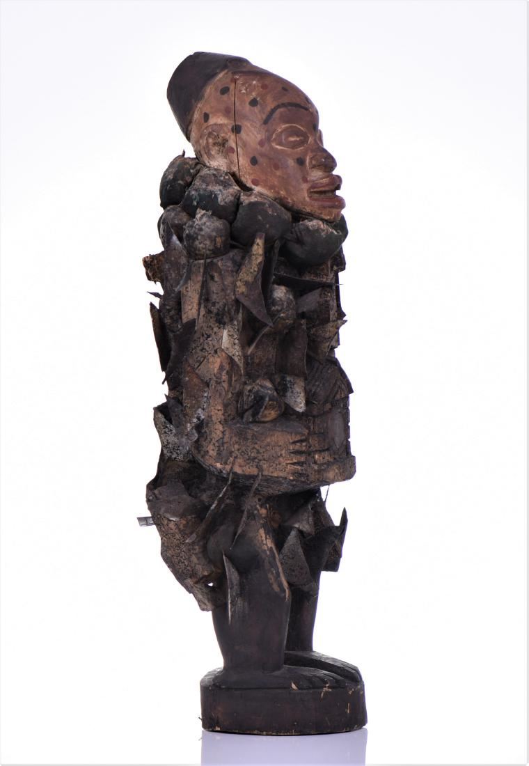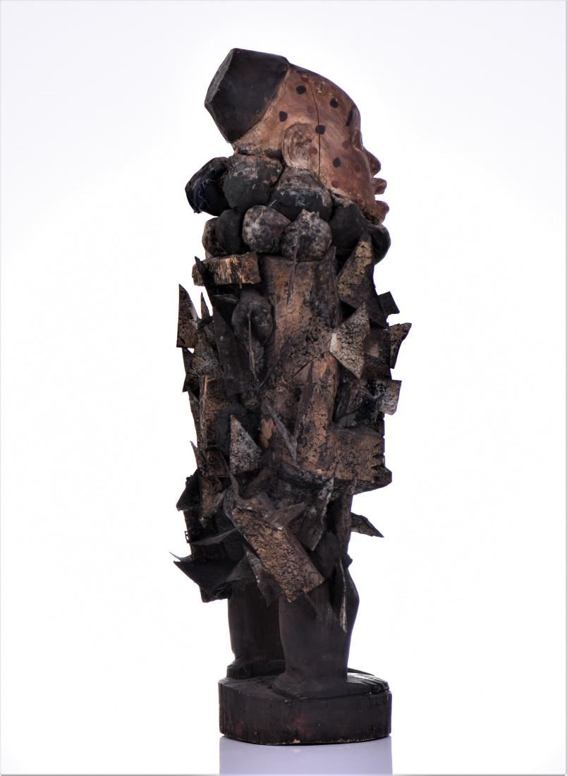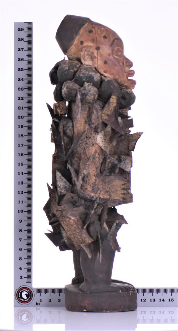 power and were effective because people believed in them. This is a beautiful and well preserved statue with original nails and metal blades. Provenance: Ethnographic Tribal Museum Collection (See Auction Catalog Description). Some Lots Have Been On Exhibition And Have A Custom Made Metal Stand Specifically Designed To Fit The Work. Estimated more than 75 yrs old. (Pangaea Auctions) Size and/or Weight: See Measurement Photo. (Photos Represent The Lot Condition.)