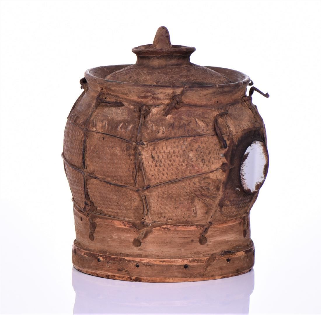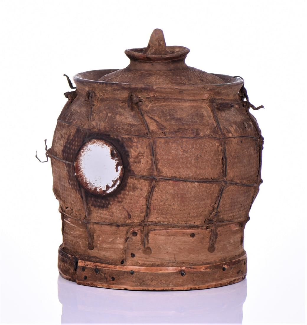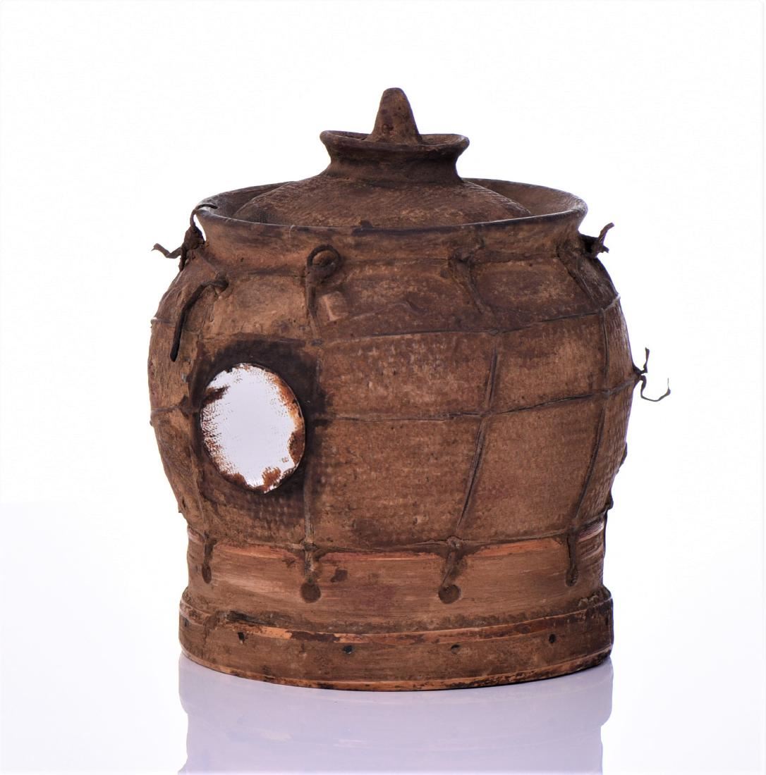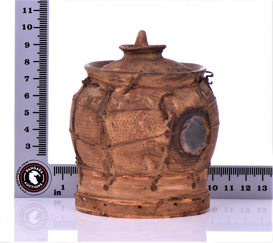 African Nkondi Terra Cotta Two Level Food Container. Provenance: Ethnographic Tribal Museum Collection (See Auction Catalog Description). Some Lots Have Been On Exhibition And Have A Custom Made Metal Stand Specifically Designed To Fit The Work. Estimated more than 50 yrs old. African art is a term typically used for the art of Sub-Saharan Africa. A few of the most popular traditional African art was produced by the tribal people of the Fang, Dan, Baoule, Dogon, Senoufo, Makonde, Bambara, and San. Most African sculpture was historically in wood and other natural materials that have not survived from earlier than a few centuries ago; older pottery figures can be found from a number of areas. Masks are important elements in the art of many peoples, along with human figures, often highly stylized and in vast variety of styles. Sculpture is most common among "groups of settled cultivators in the areas drained by the Niger and Congo rivers. Direct images of deities are relatively infrequent, but masks in particular were made for religious ceremonies. Later West African cultures developed bronze casting for reliefs, like the Benin Bronzes, to decorate palaces and for highly naturalistic royal heads from around the Yoruba town of Ife, in terracotta as well as metal, from the 12th to 14th centuries. Akan gold weights are a form of small metal sculptures produced over the period 1400–1900; some apparently represent proverbs, contributing a narrative element rare in African sculpture; and royal regalia included impressive gold sculptured elements. Many West African figures are used in religious rituals and are often coated with materials placed on them for ceremonial offerings. Eastern Africans, in many areas shorter of large timber to carve, are known for Tinga Tinga paintings and Makonde sculptures. There is also tradition of producing textile art. Modern Zimbabwean sculptors in soapstone have achieved considerable international success. Southern Africa's oldest known clay figures date from 400 to 600 AD and have cylindrical heads with a mixture of human and animal features. (Wikipedia) Size and/or Weight: See Measurement Photo. (Photos Represent The Lot Condition.)