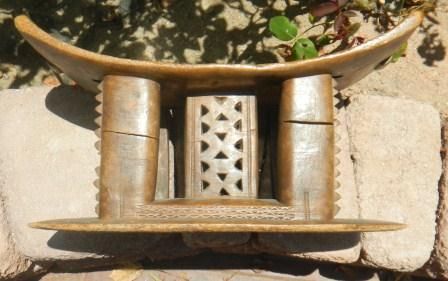 African Wood Stool from 1910 measuring 17 and one half by ten by eight inches. Ashanti Shipping $20.00, Fair condition with cracks and wear