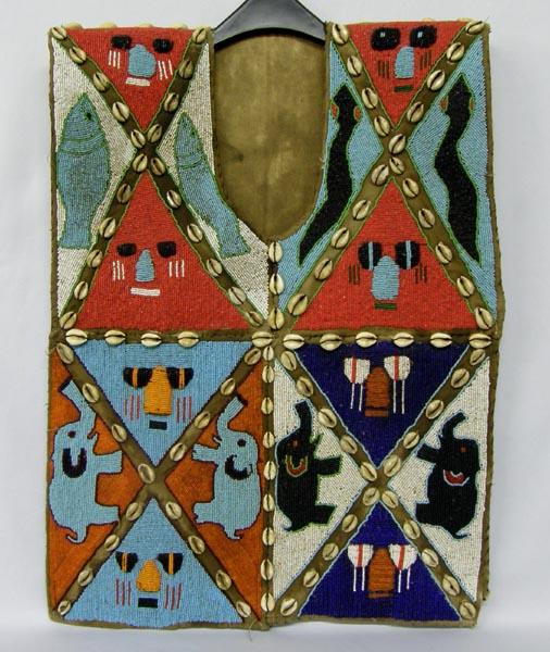 African Zoomorphic Fully Beaded Vest. Beaded on both sides. Measures approx. 26 1/2'' x 19''. Buyers Pay Actual Shipping and Handling Charges(see terms and conditions for more information).