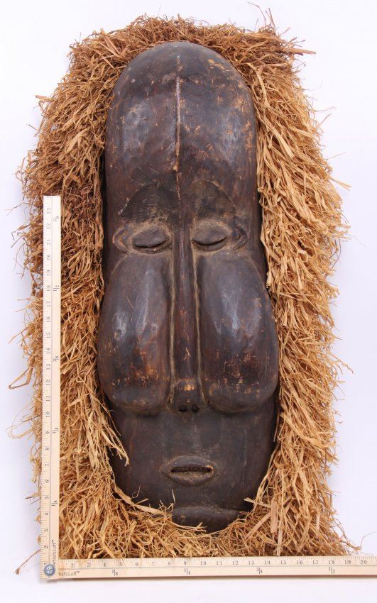 African large wall mask, mid 20th Century. (Size: See second photo for measurement.) Photos are part of the description representing the condition report. Pangaea Auctions urges Bidder's to view all attached photos.
