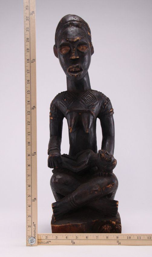 African maternity figure, carved from wood, 19th Century OR early 20th Century. Provenance: Private collection collected between 1910 and 1930. (Size: See second photo for measurement.) Photos are part of the description representing the condition report. Pangaea Auctions urges Bidder's to view all attached photos.