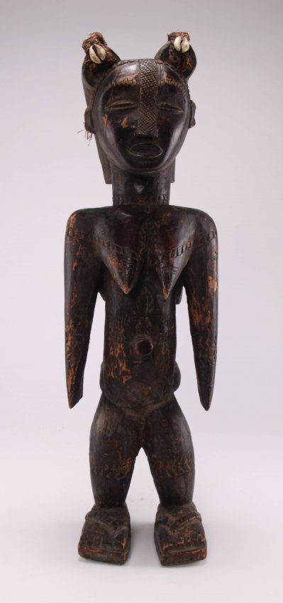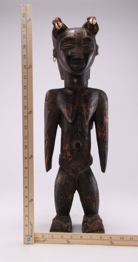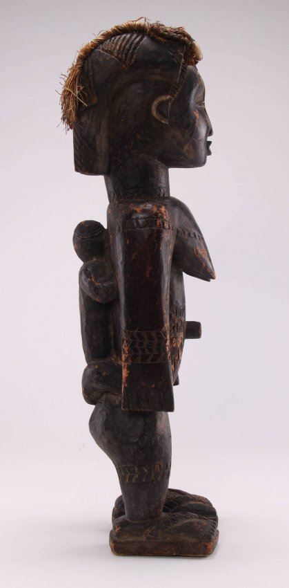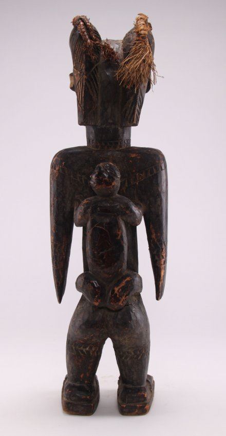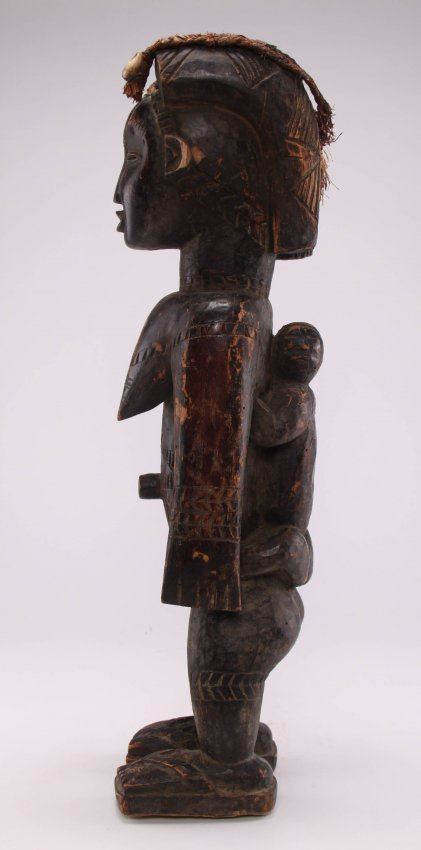 African maternity figure, carved from wood, 19th Century OR early 20th Century. Provenance: Private collection collected between 1910 and 1930. (Size: See second photo for measurement.) Photos are part of the description representing the condition report. Pangaea Auctions urges Bidder's to view all attached photos.