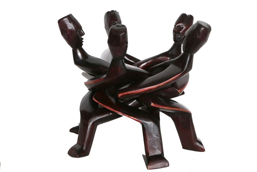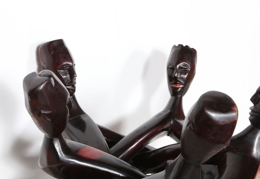 African or New Guinea, Five Intertwined Figures in Circle, Wood Sculpture
