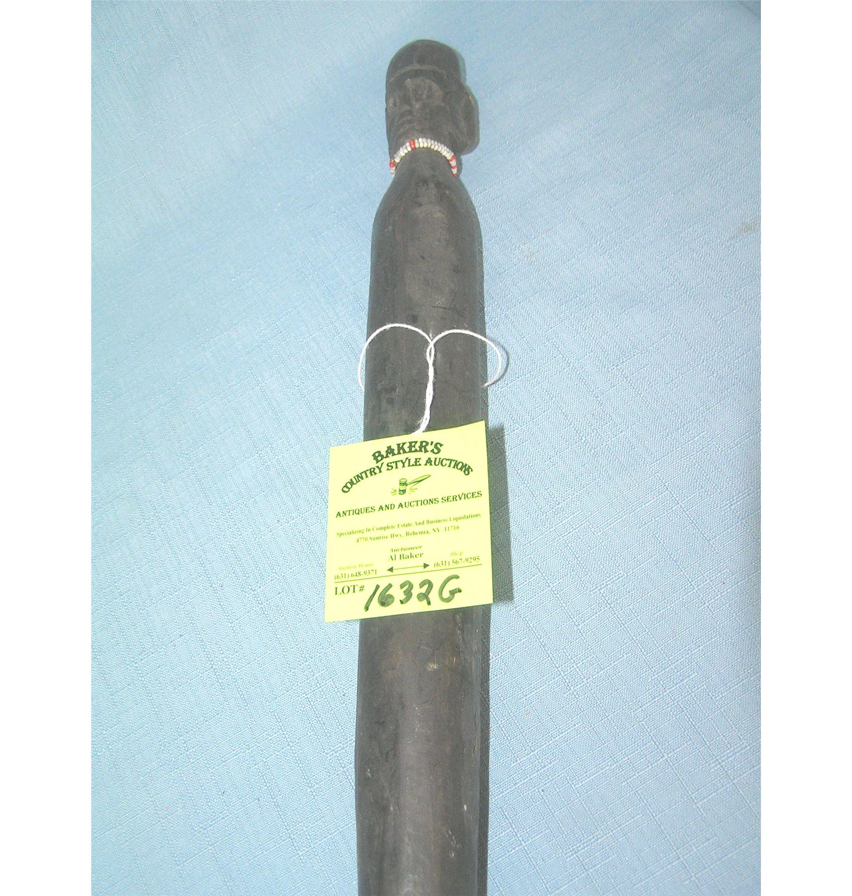Hand carved African walking stick with beaded necklace est. value $250.00-$275.00