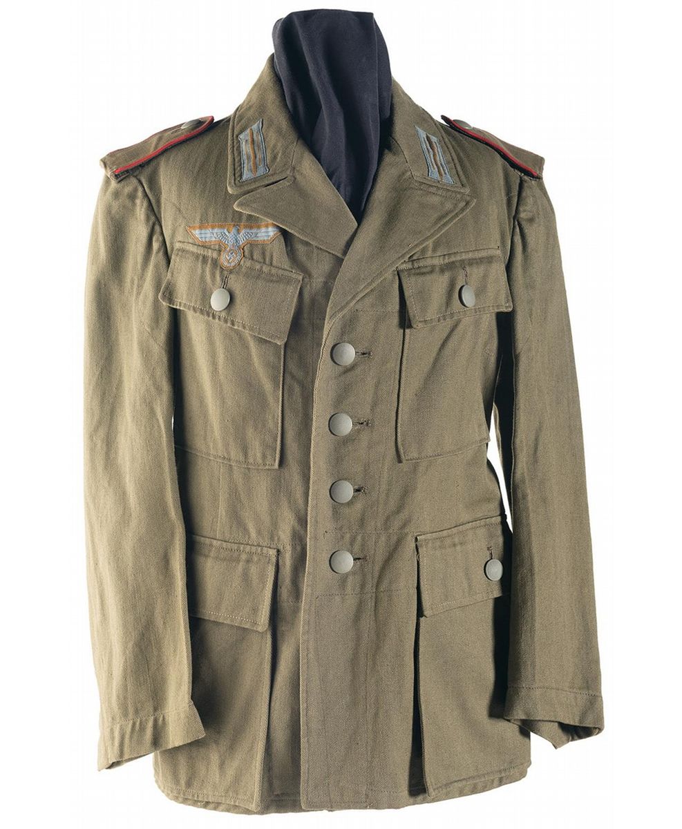 Afrika Korps Style Heer M43 Tropical Tunic Outfitted for an Enlisted Artilleryman
