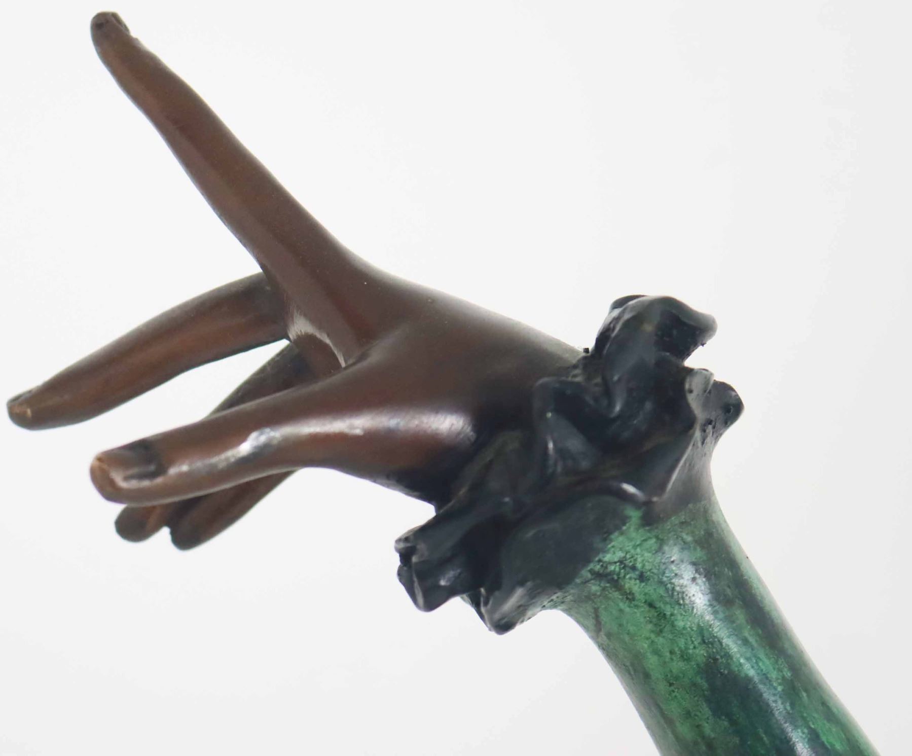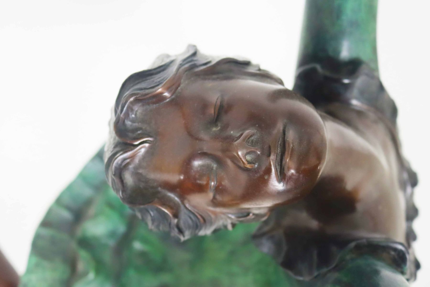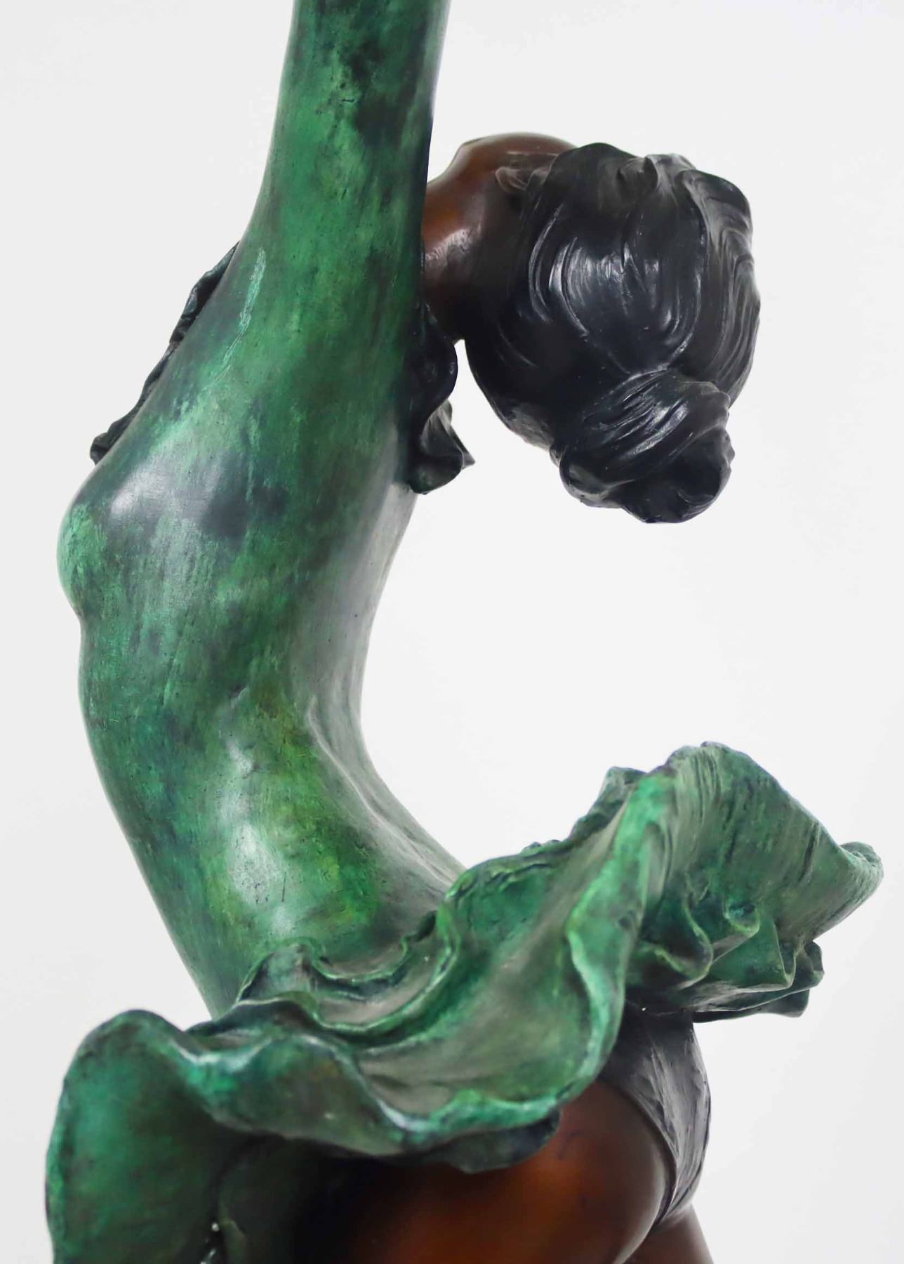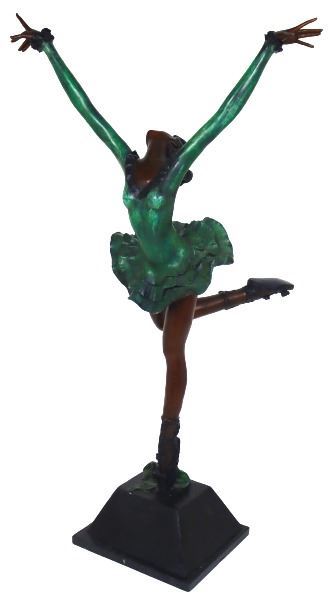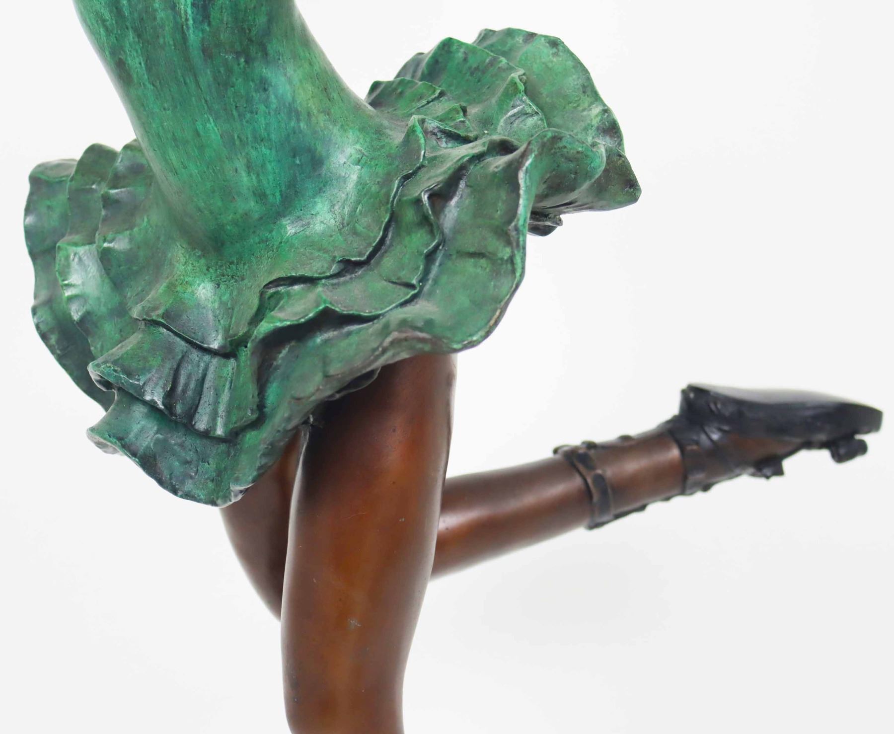 Large scale bronze ballerina statue. After A. Fayral. Finished with classic bronze patina accented by antique colored patinas on clothes.