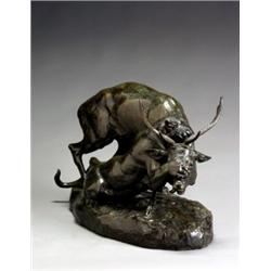 After Antoine Louis Bayre (French 1796-1875), Panther Attacking an Antelope, Signed A.L. BAYR...