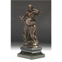 After August Moreau, CAPTIVE, a bronze study of a classically draped maiden seated on a floweri...
