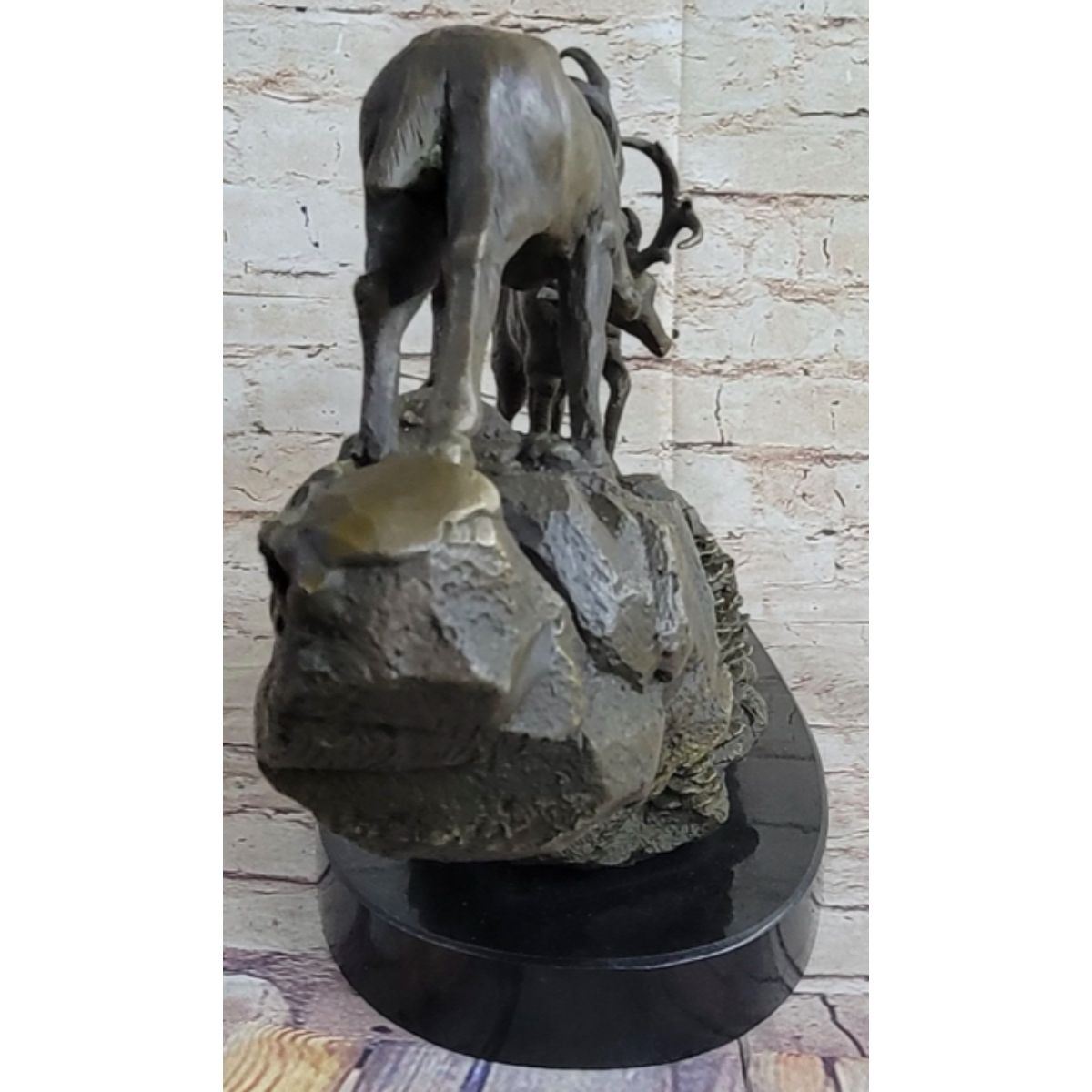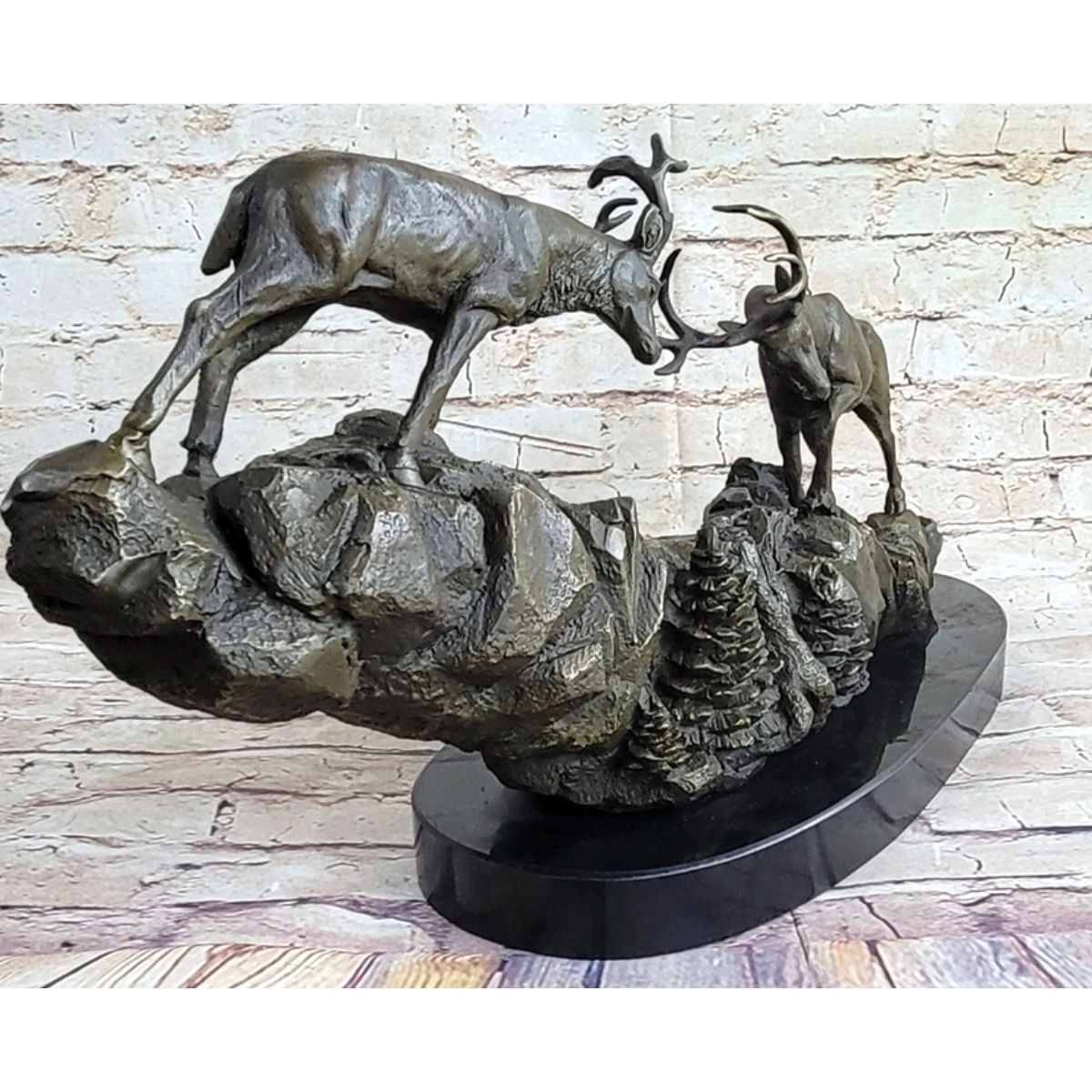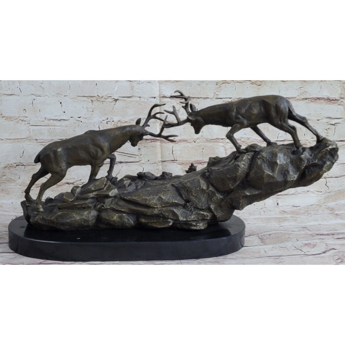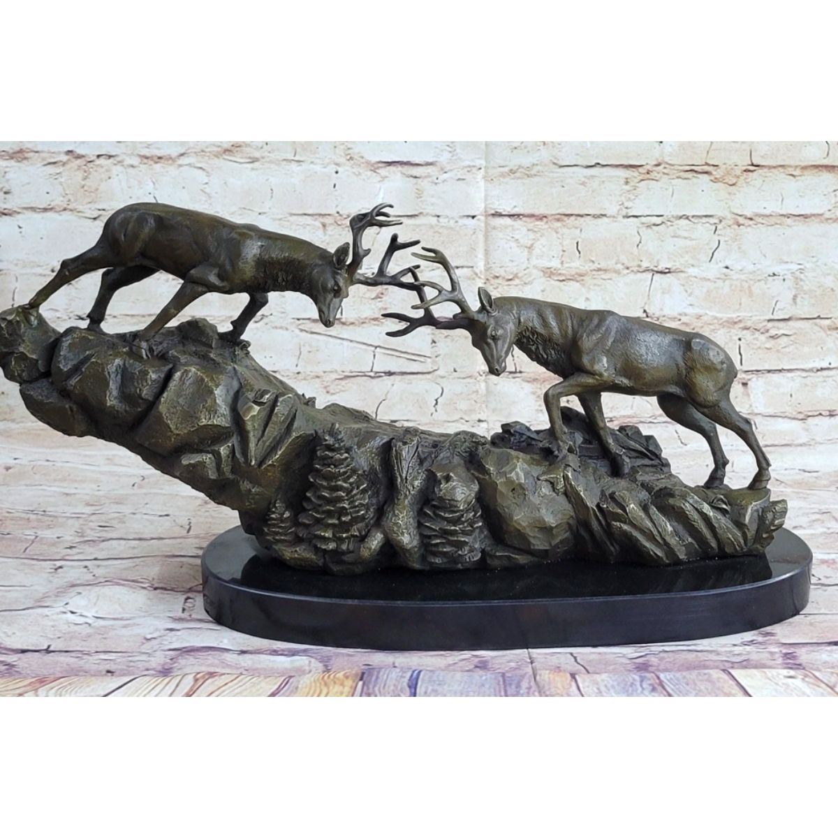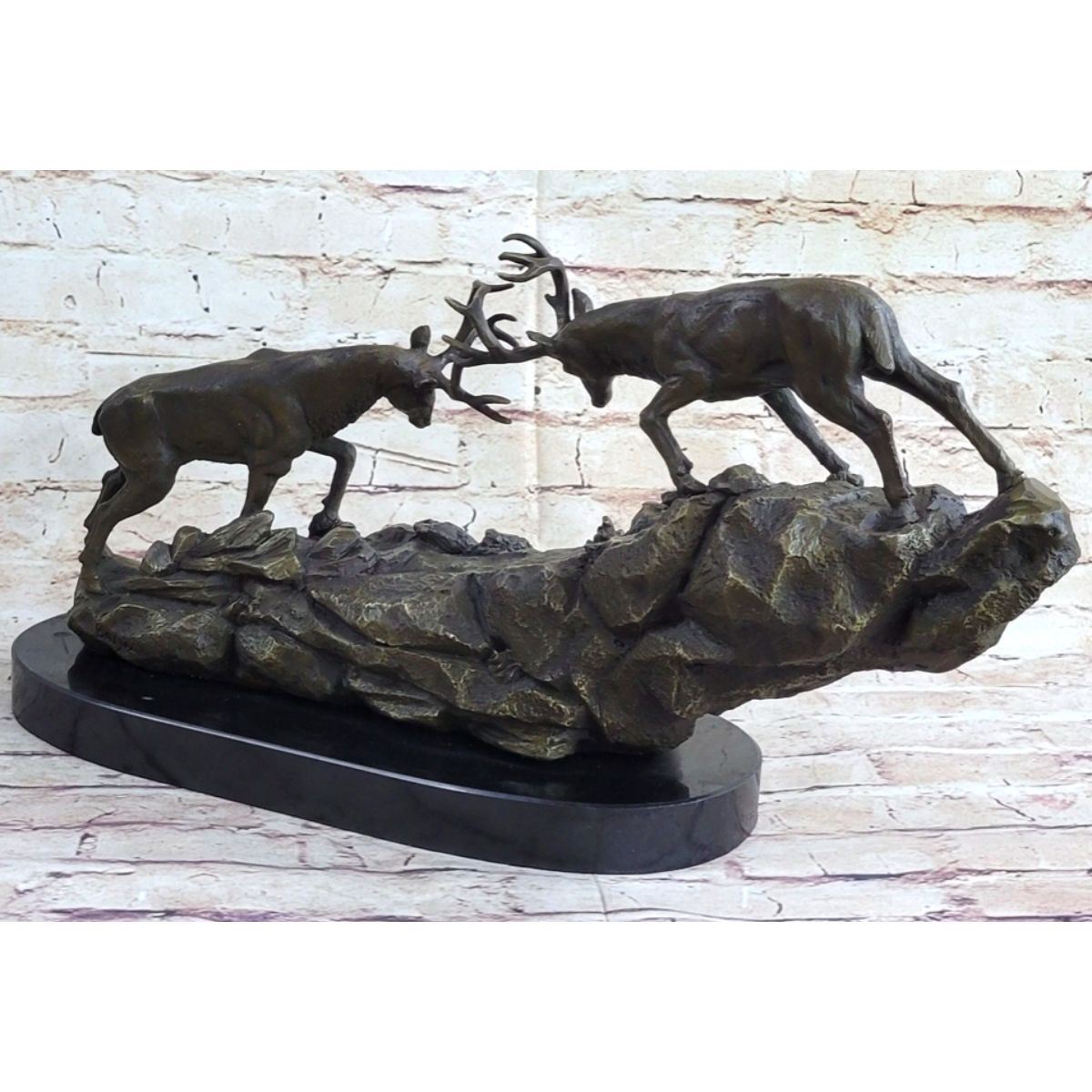 After Barye, Fighting Stags, Deer, Elk sculpture. Lost wax casting method bronze, with brown patina, mounted on a marble base. 10" H X 20" W. 22lbs.Â
