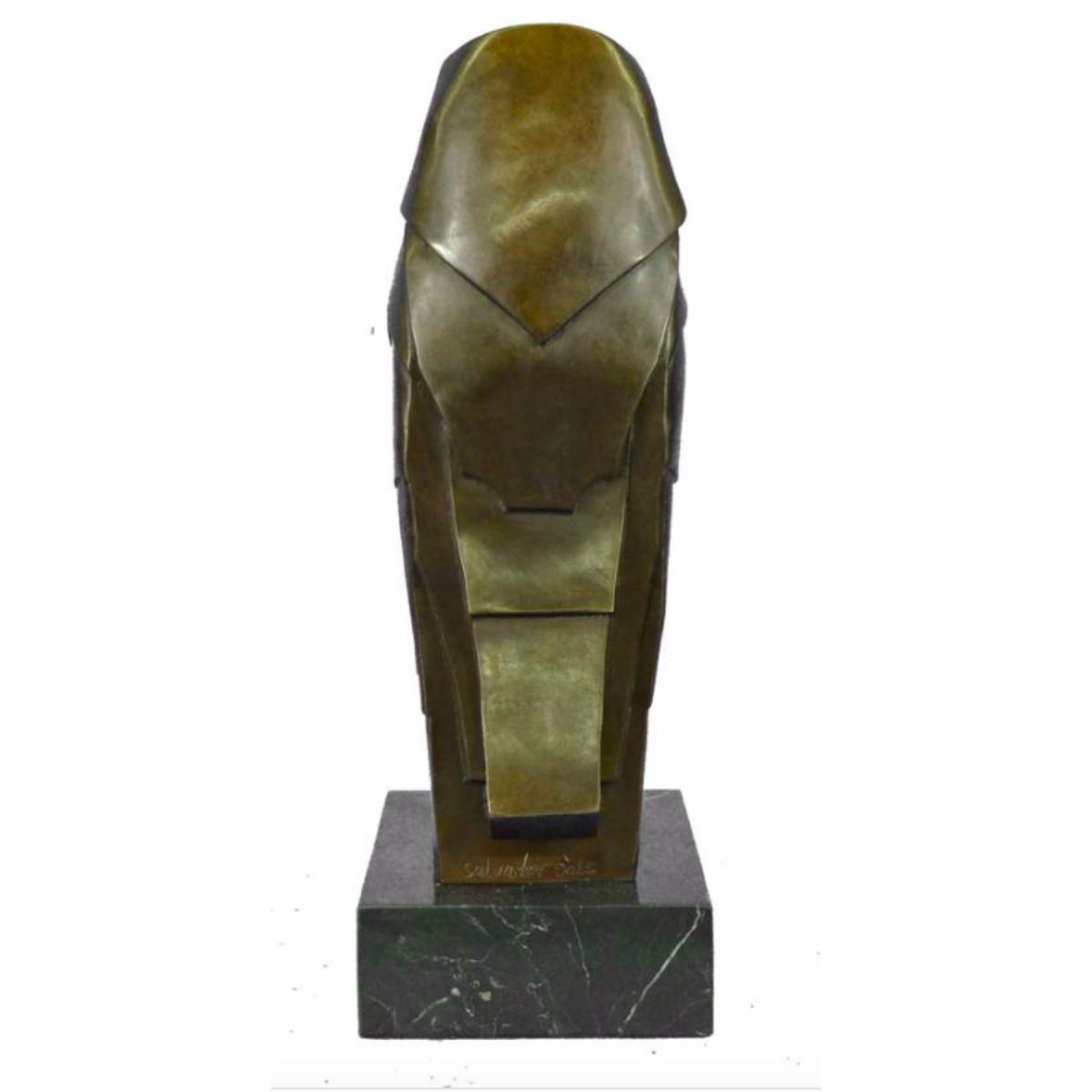 After Salvador Dali, abstract owl bird sculpture, statue. Lost wax casting method bronze, with brown patina, mounted on marble base. 15" H X 6" W. 15lbs.