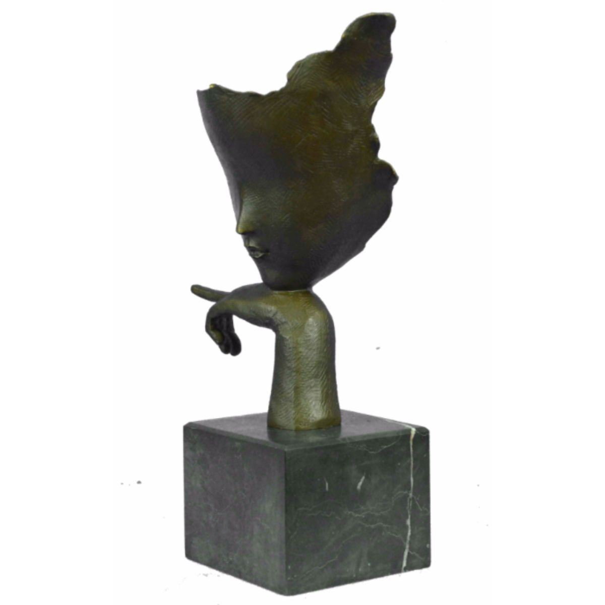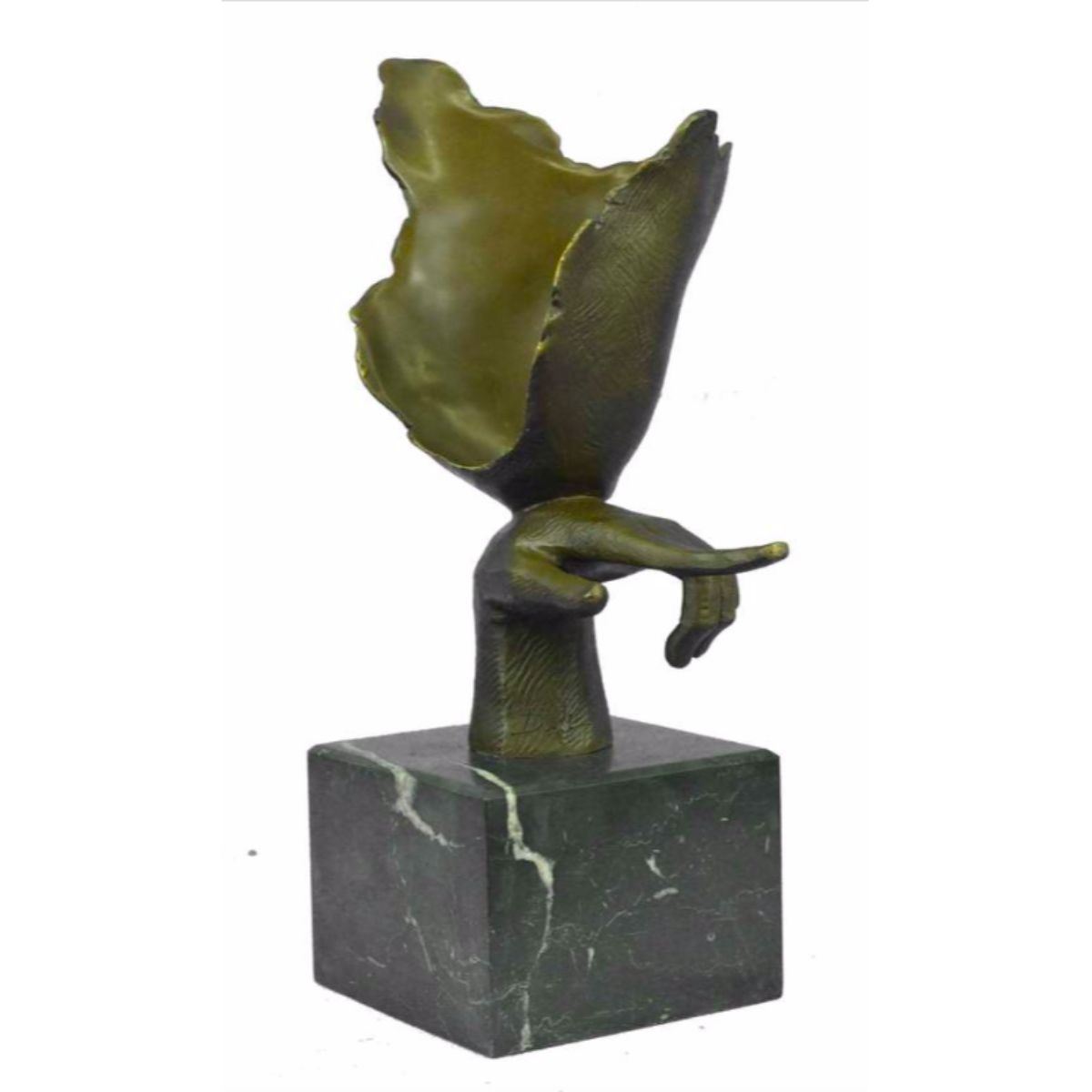 After Salvador Dali, abstract female face sculpture. Lost wax casting method bronze, with brown patina, mounted on a marble base. 15" H X 12" W. 15lbs.