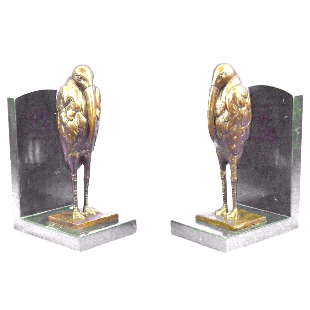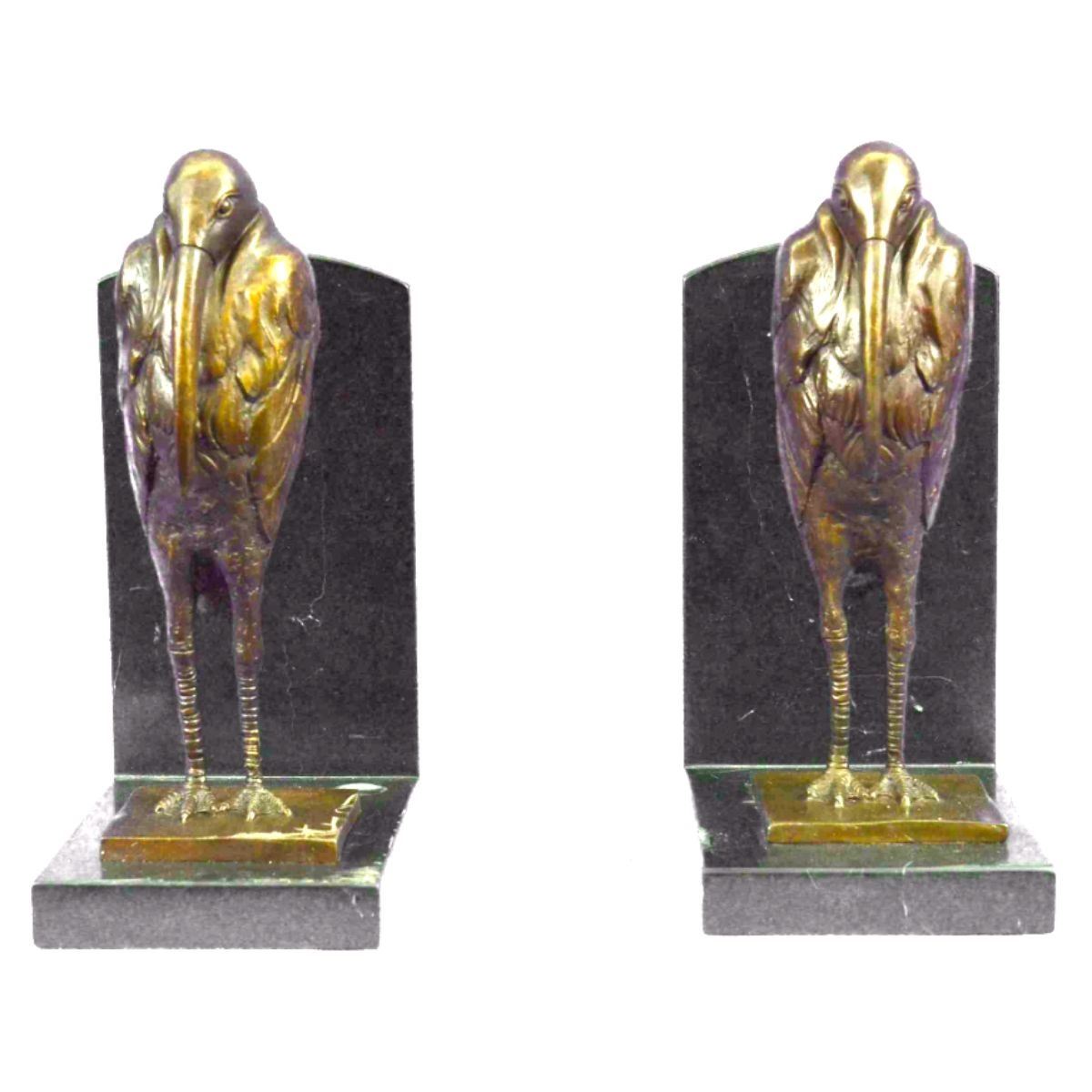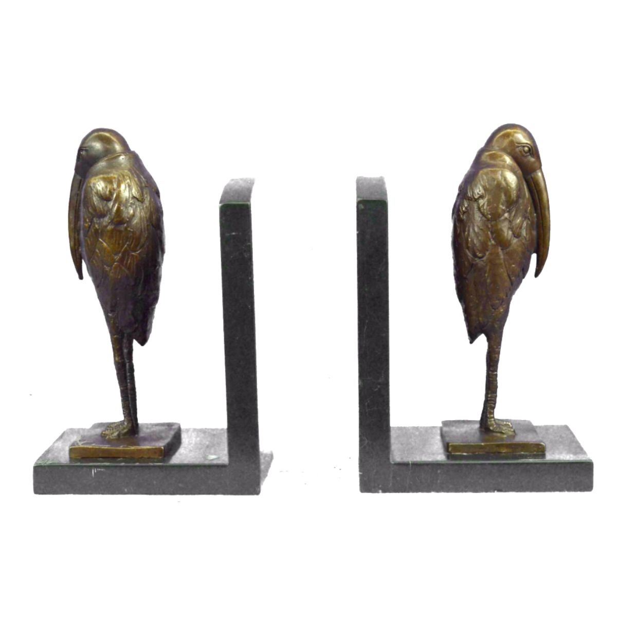 After Salvador Dali, pair of pelican bird bronze bookends. Lost wax casting bronze sculptures, mounted on marble. 9" X 6" each. 12 lbs.Â