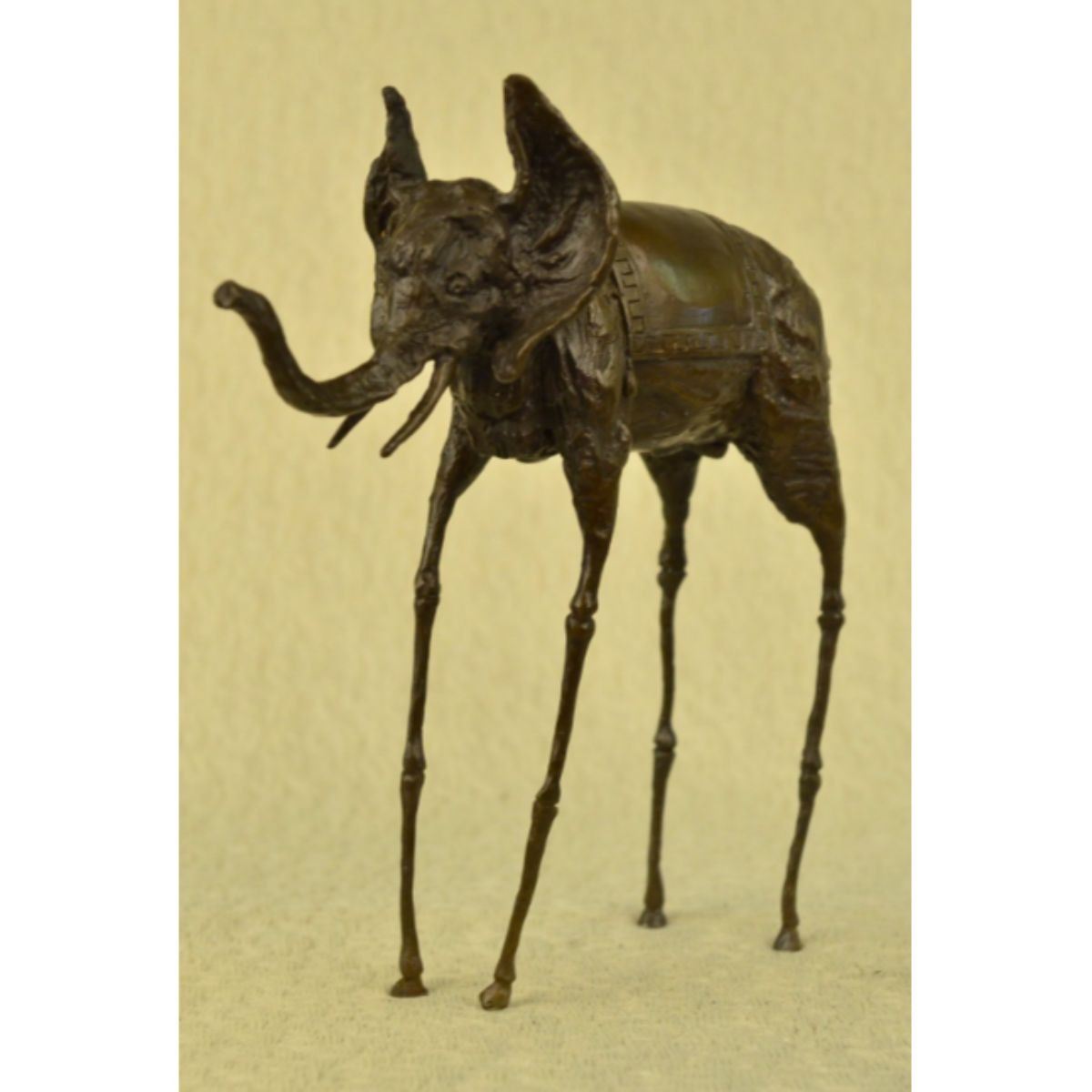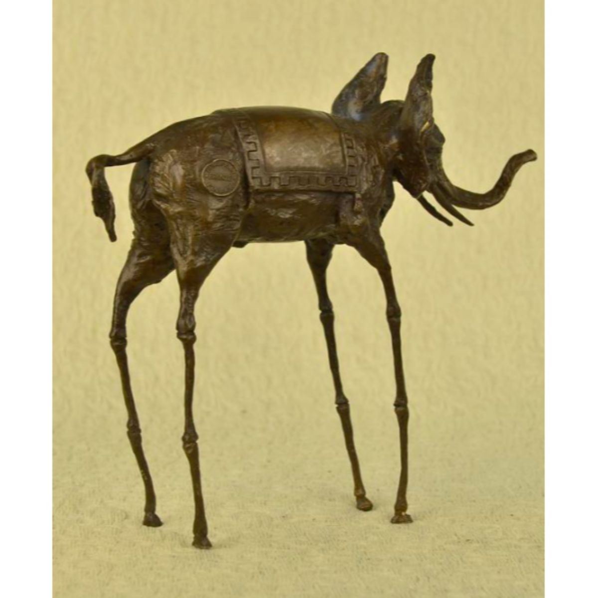 After Salvador Dali ( Spain, 1904 - 1989 ) surrealist elephant sculpture. Lost wax casting method bronze, with brown patina. 12" H X 12" W. 6 lbs.