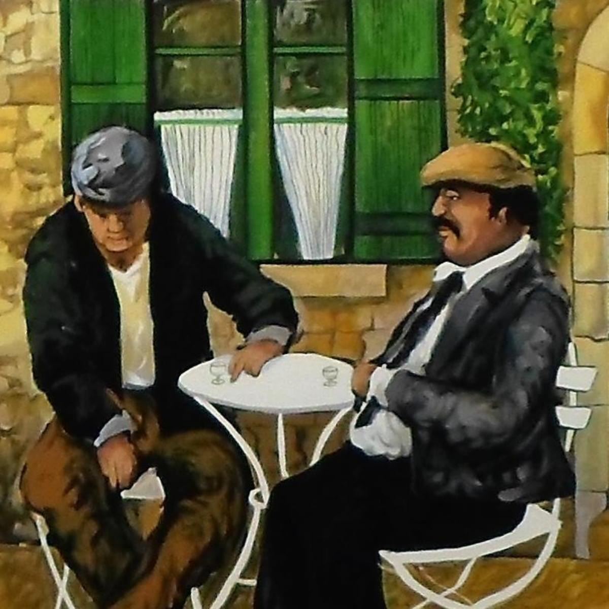 "After Dinner Drink" is a limited edition serigraph on paper by Guy Buffet. It is numbered, hand-signed by the artist, and comes with a Certificate of Authenticity. Measures approx. 26" x 21.25" (image).