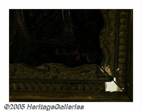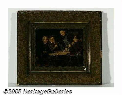 <B>After EDUARD VON GRUTZNER (German 1846-1925)</B></I><BR>Card Players<BR>Oil on panel<BR>8in. x 10.25in.<BR>Signed lower right 'E. Grutzner'<BR><BR>Condition Report: thick surface grime and yellowed varnish, cracklure in figures<BR>