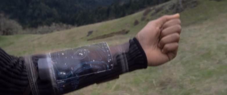 Arm communicator used by the character of Kitai, actor Jaden Smith in the 2013 M. Night Shyamaian film After Earth. A crash landing leaves Kitai Raige and his father Cypher stranded on Earth, a millennium after events forced humanity's escape. With Cypher injured, Kitai must embark on a perilous journey to signal for help. This communicator was mounted to the actors suit via strong magnets as displayed a holographic display in the film. This piece is made of acrylic, black in color and features a metal backing. This item remains in excellent, production used condition.