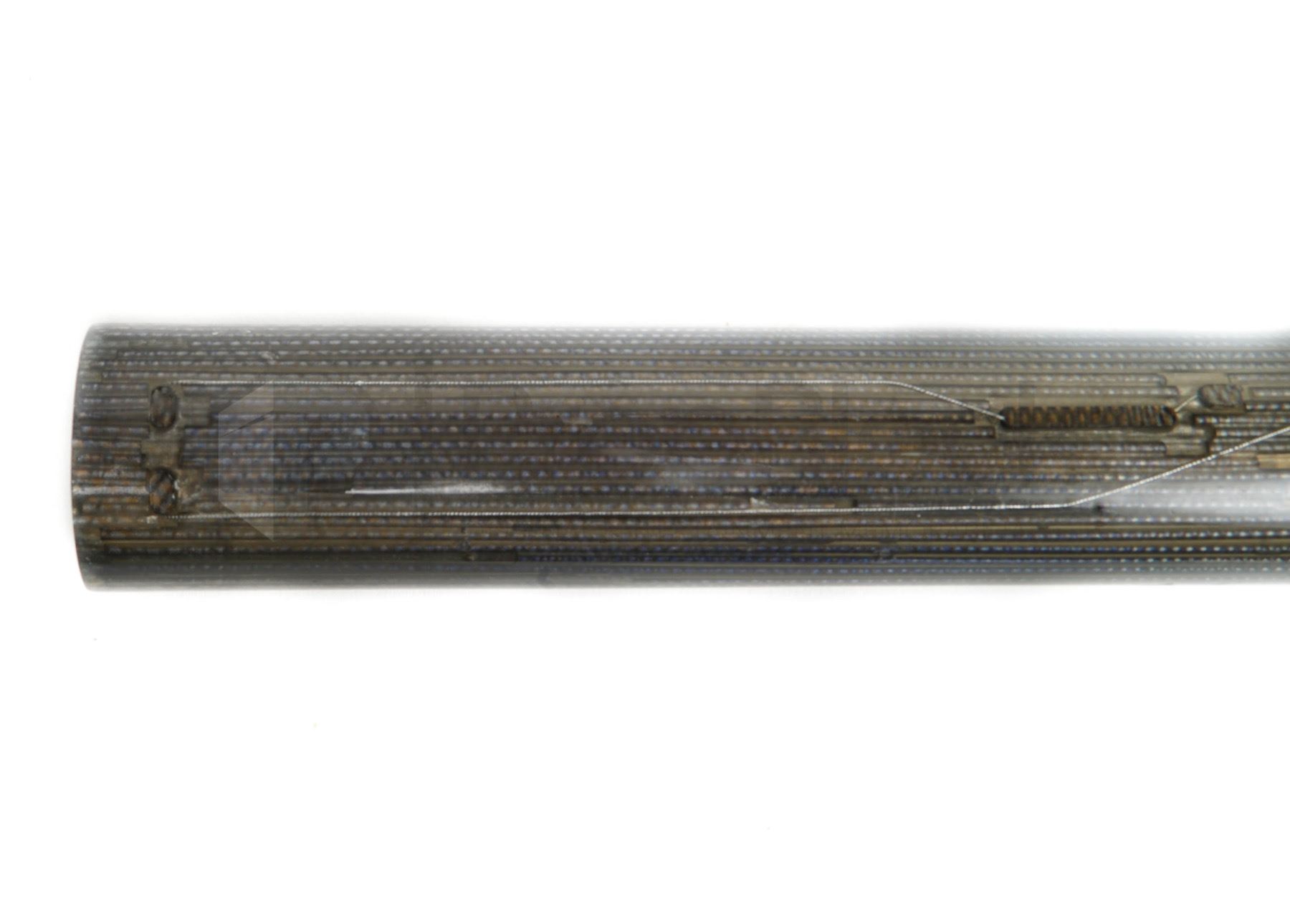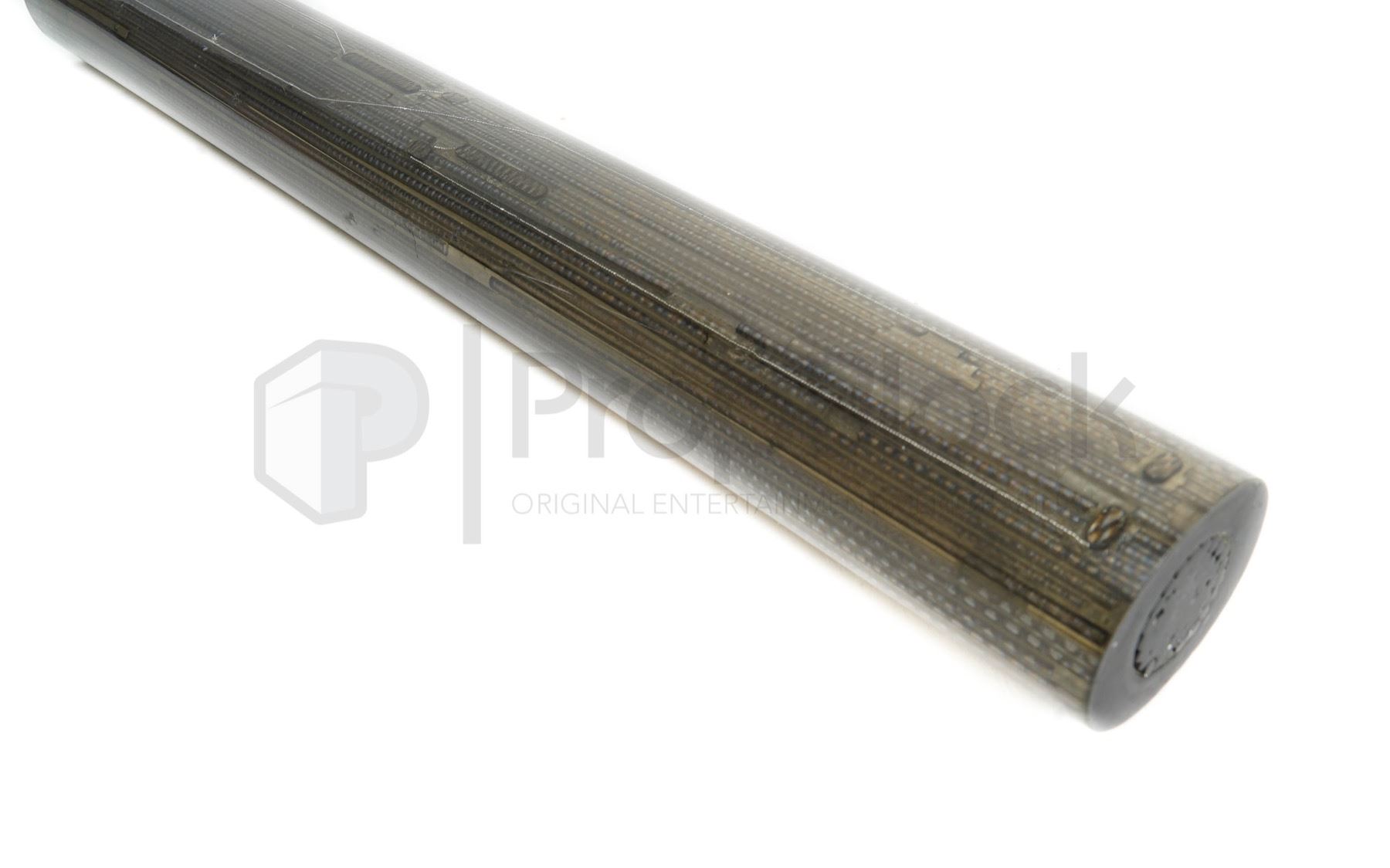 United Ranger Cadet Cutlass featured in the 2013 science fiction film After Earth. This style Cutlass were given out to cadet's of the United Ranger Corps. And are slightly smaller in size from the versions used by the main members. This piece is a dark metallic gunmetal in color with metal line details on the outside covered by numerous layers of clear acrylic. This item is solid, and does not have open ends to hold blades. This piece remains in excellent, production used condition.