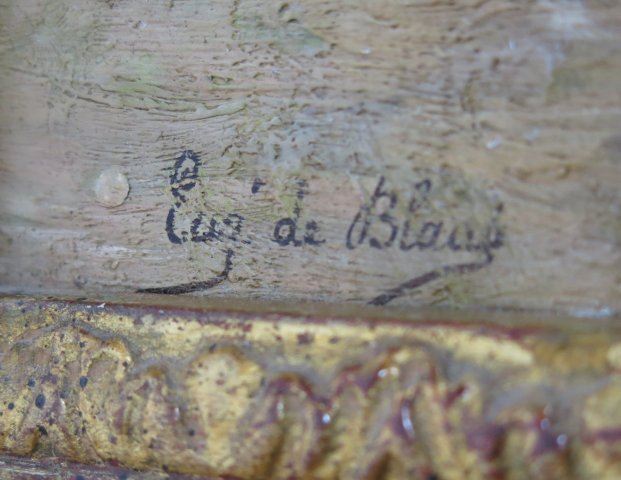 Oil on copper. Signed lower left. Framed. Eugene De Blaas (1843-1931). Approx. 11 1/2" H x 9 1/2" W unframed, 15 1/2" H x 13 1/2" W framed.