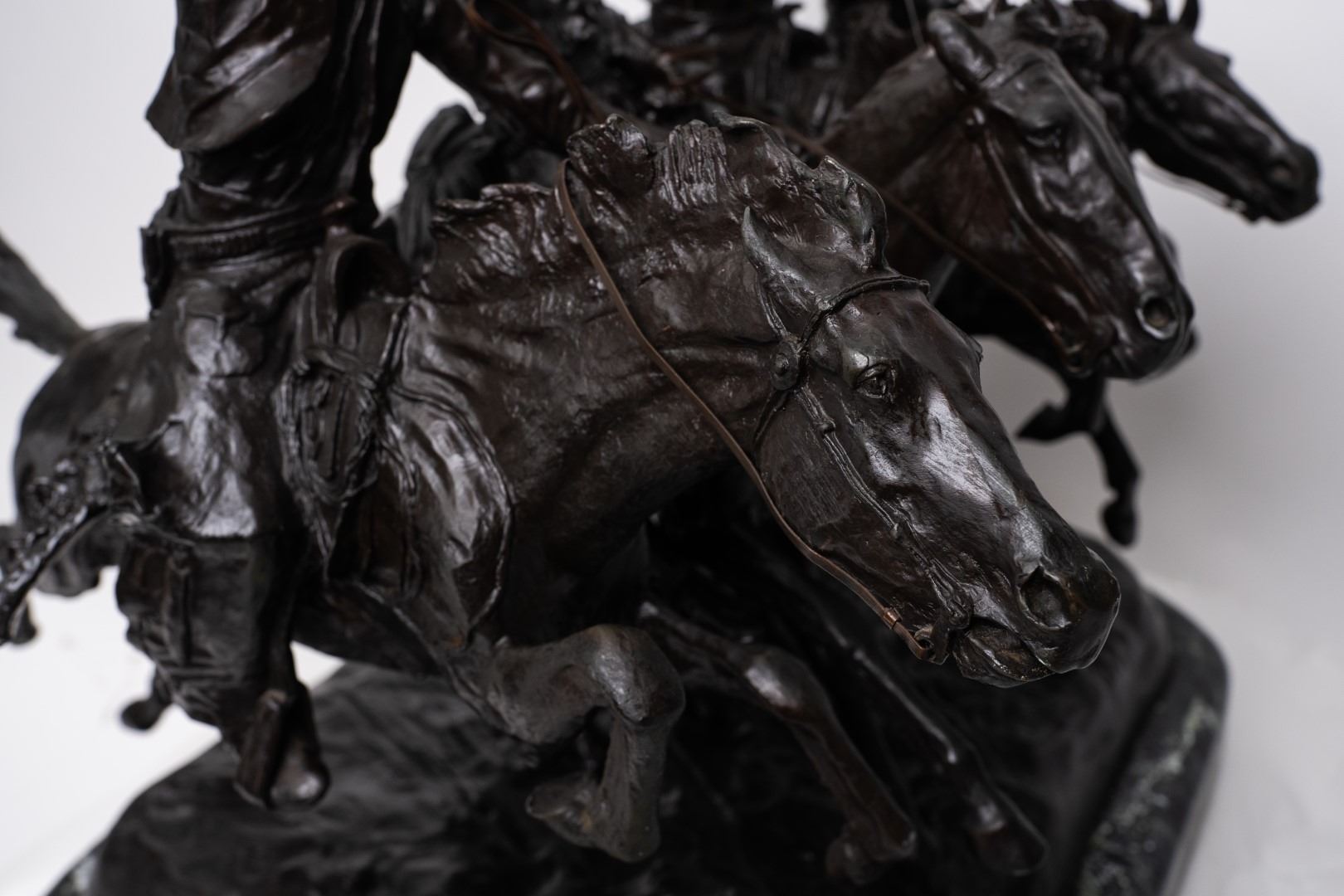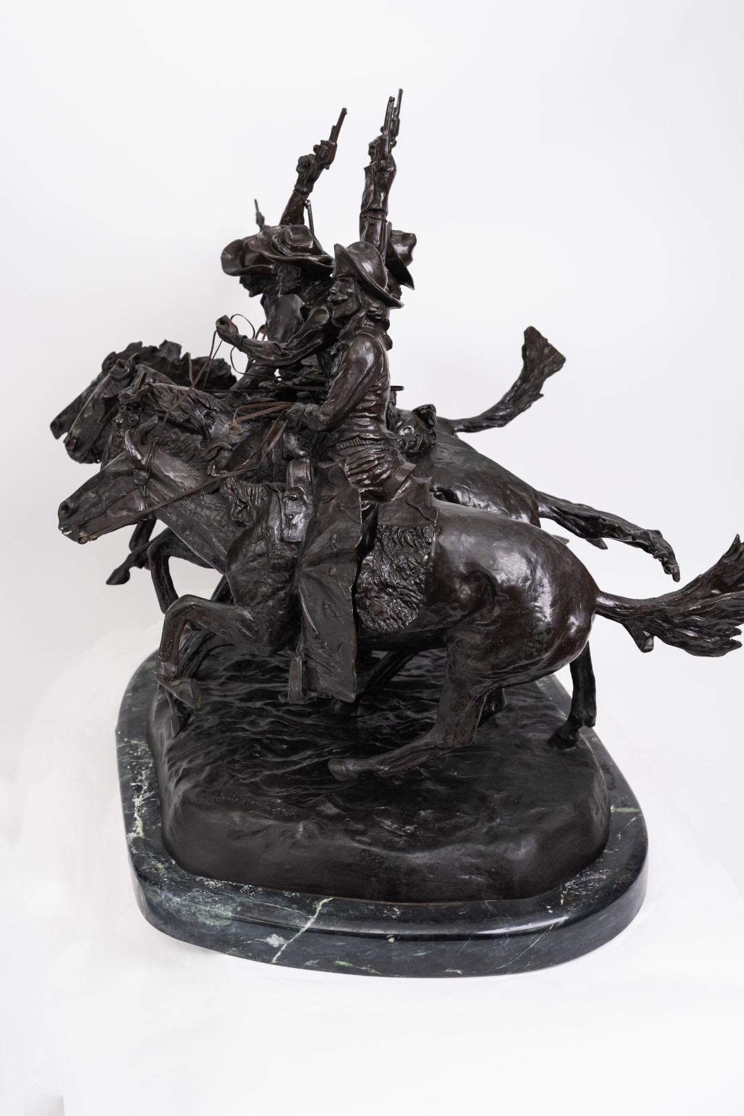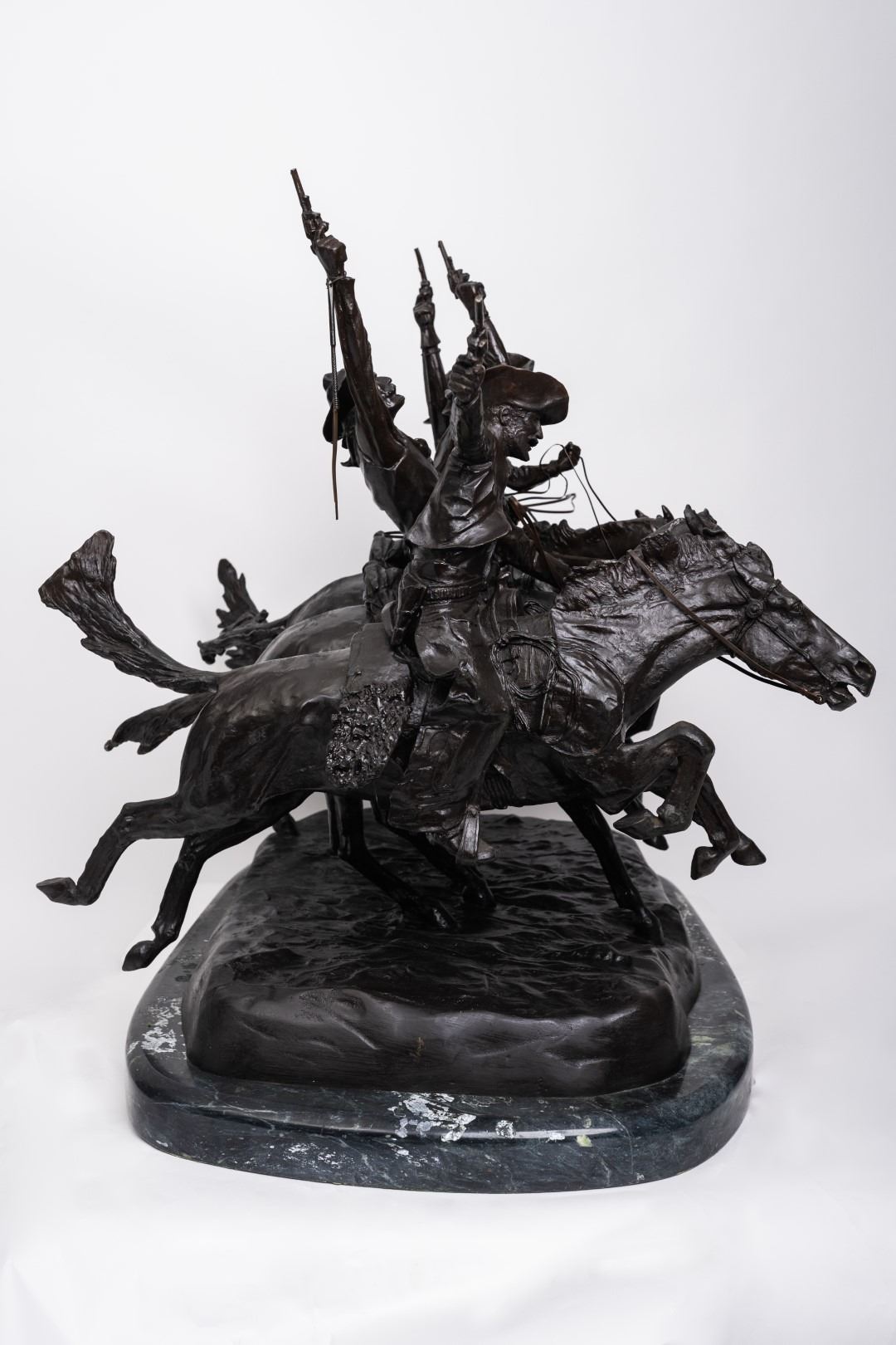 After Frederic Remington "Coming Through The Rye" 30" Bronze Statue on a Black Marble Base