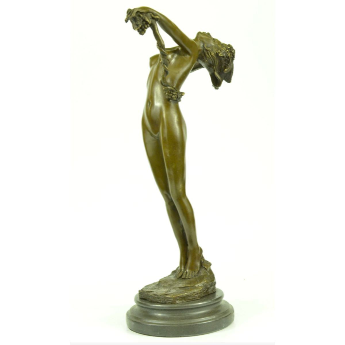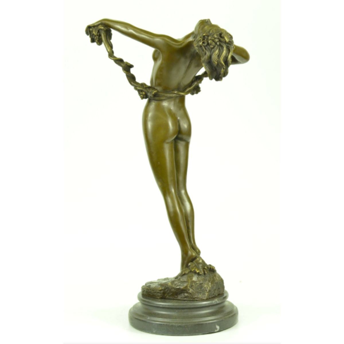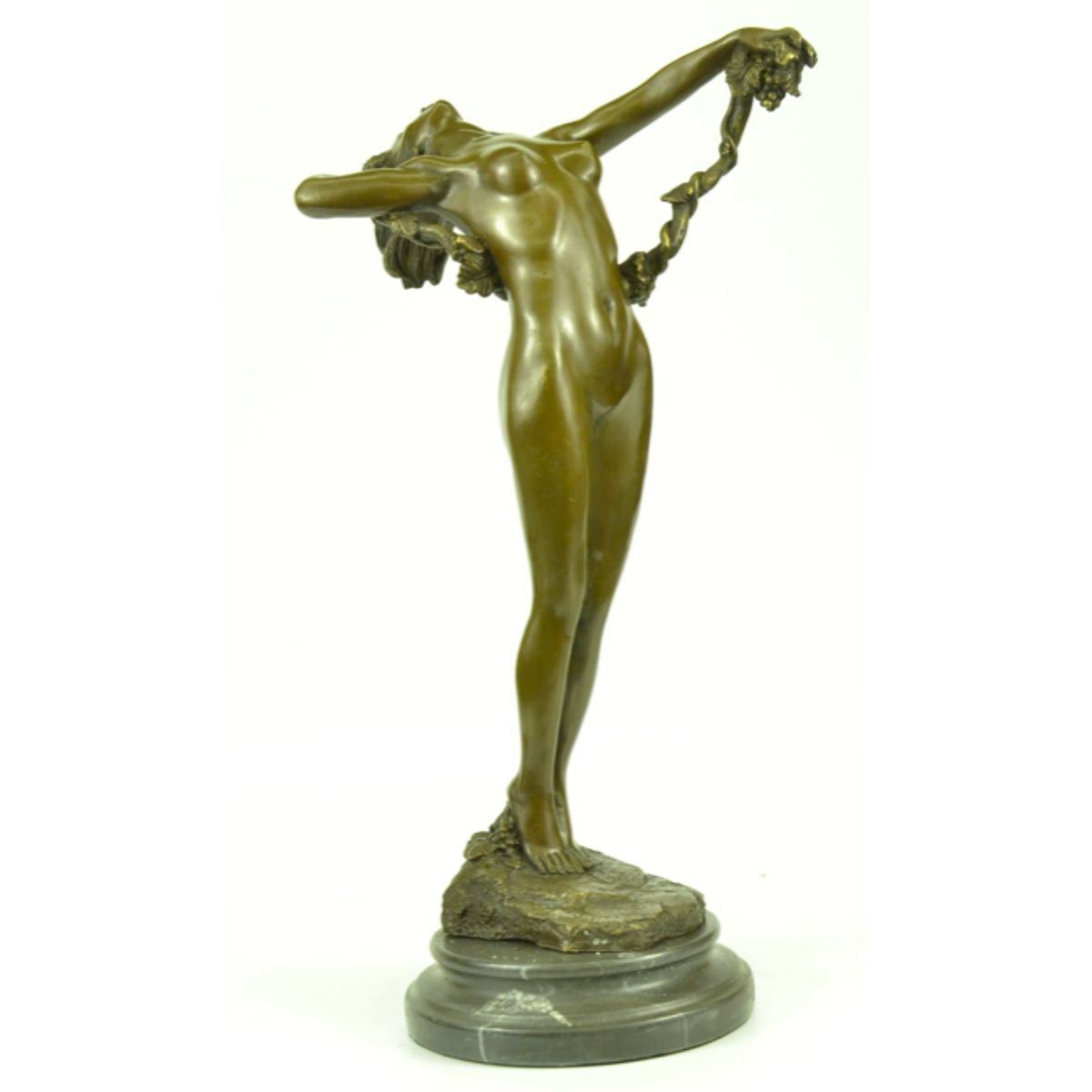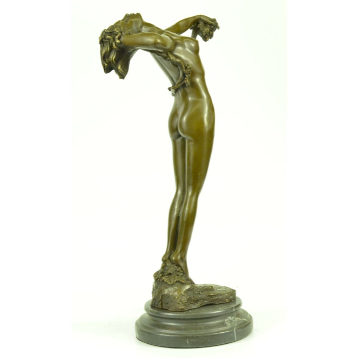 After Harriet Whitney Frishmuth ( American 1880 - 1980 ) Art Nouveau sculpture, "The Vine". Lost wax casting method bronze with brown patina & gold gilt highlights, mounted on marble base. 16" H X 9" W. 10lbs