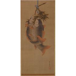 After Hanabusa Itcho, (1652 - 1724), CARP, Hanging scroll, ink and colour on fabric, signed a...