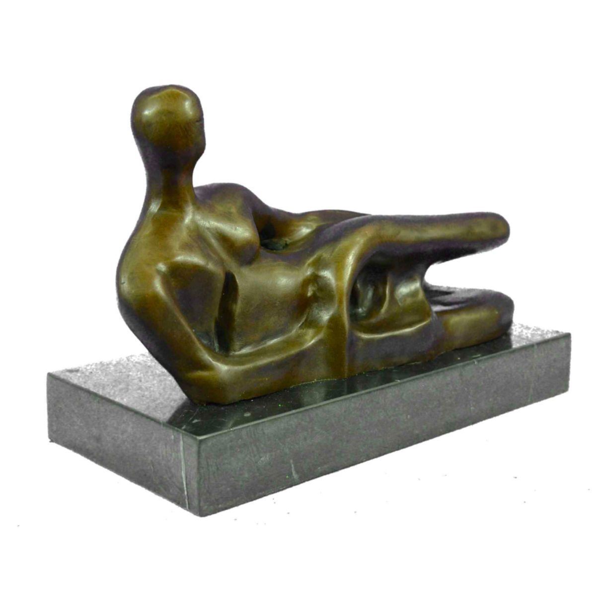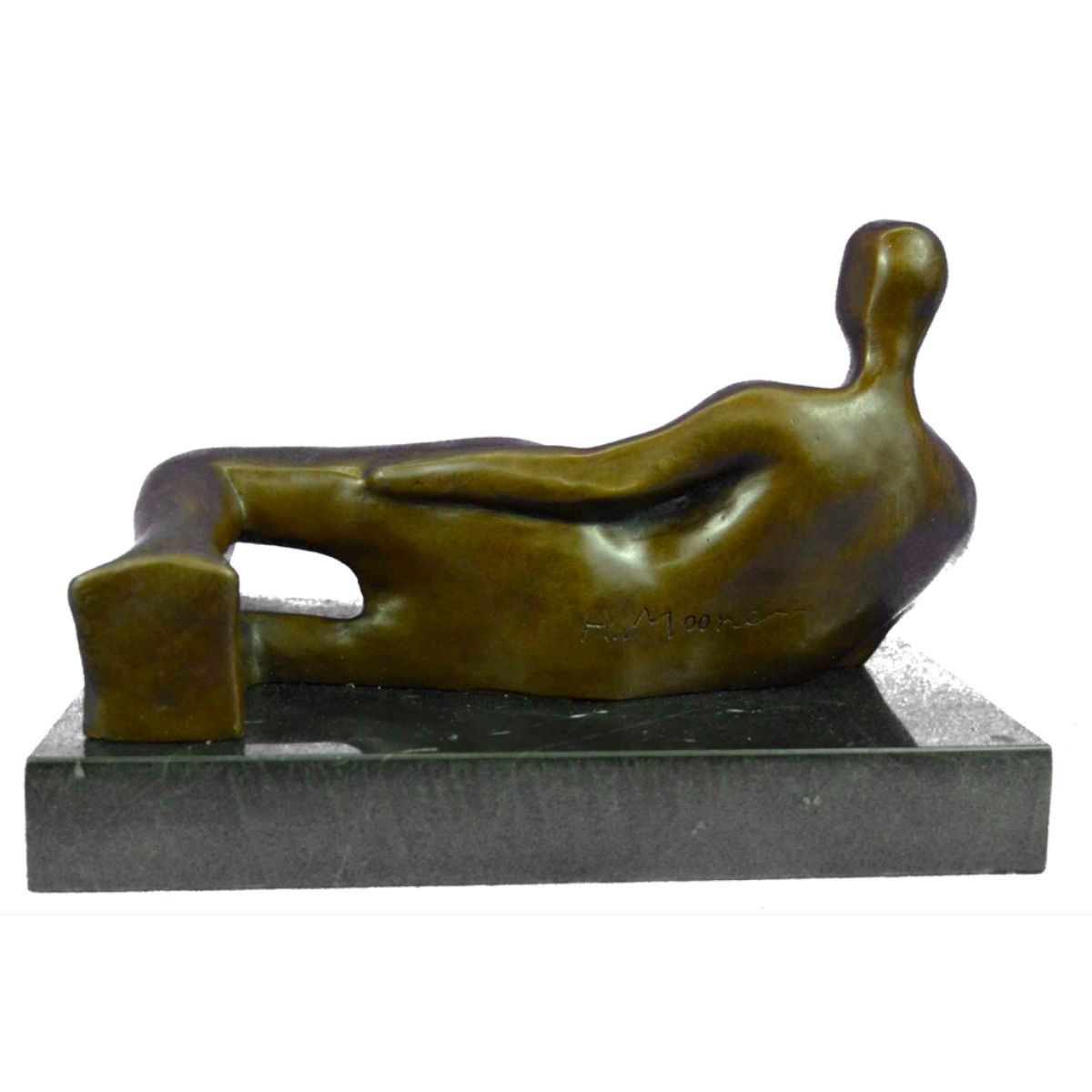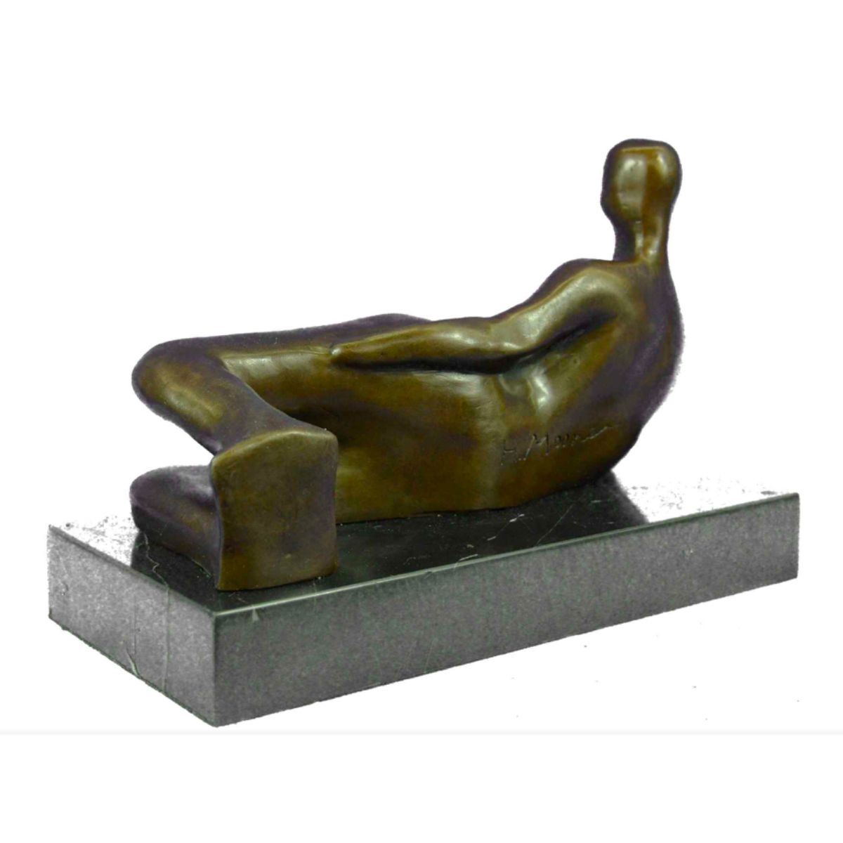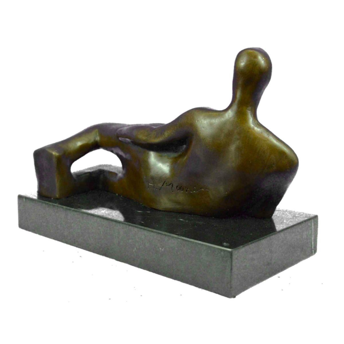 After Henry Moore, abstract reclining sculpture. Lost wax casting method bronze, with brown patina, mounted on a marble base. 6 1/2" X 9". 10lbs.Â