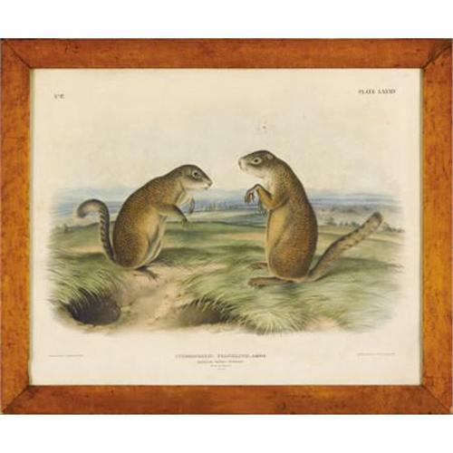 <B>After JOHN JAMES AUDUBON (American, 1785-1851)</B></I><BR><I>Spermophilus Franklinii Sabine, Franklins Marmot Squirrel, Male and Female </B></I>(Plate LXXXIV)<I></B></I><BR>Color lithograph<BR>21-1/2 x 26-1/2 inches (54.6 x 67.3 cm)<BR> <B>Condition Report:</B> Slight toning, not examined out of frame.<BR><BR><b>Shipping:</b> Requires 3rd Party Shipping (<a target="_blank" href="http://www.heritageauctions.com/common/shipping.php">view shipping information</a>)