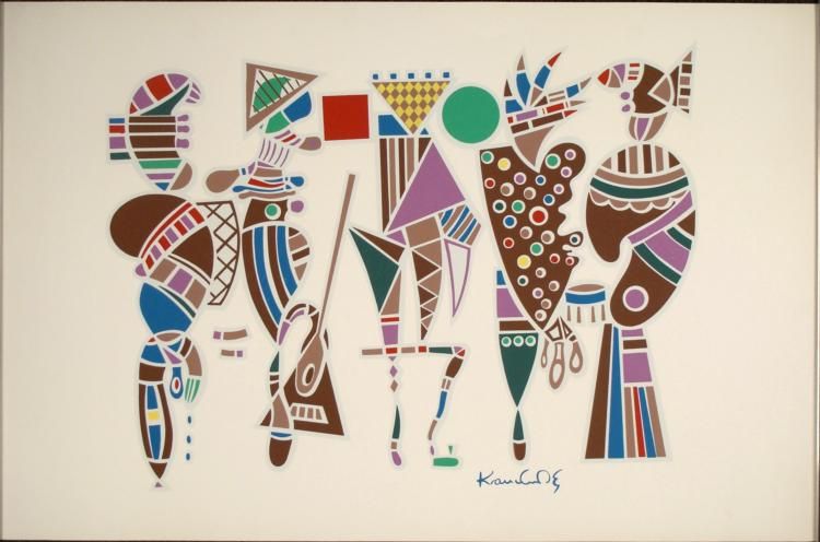 This is an interpretation after an original work by Wassily Kandinsky. It captures his energy and colorful cartoon-like forms. Signature: In the plateMedium: Lithograph on archival paperSheet size: 23 x 35 inchesCondition: Excellent
