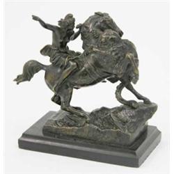 After Karl Kiss, a late 19th century German bronze group of an Amazon being attacked by a Tiger, the equestrian figure on shaped base inscribed by the founders E.G. Zimerman of Hanau, 7 ins £300-400
