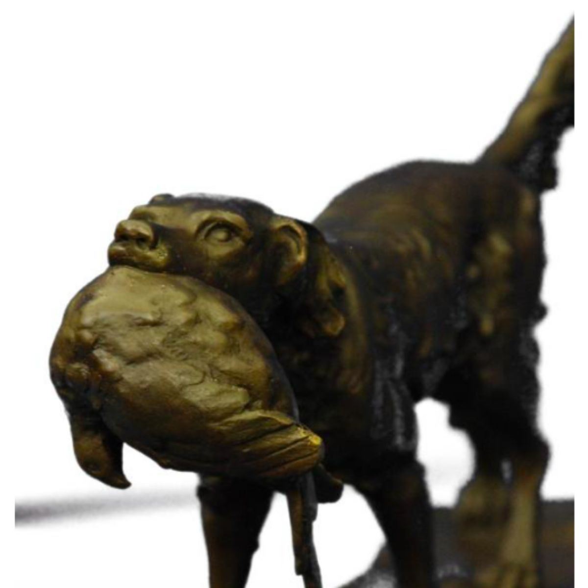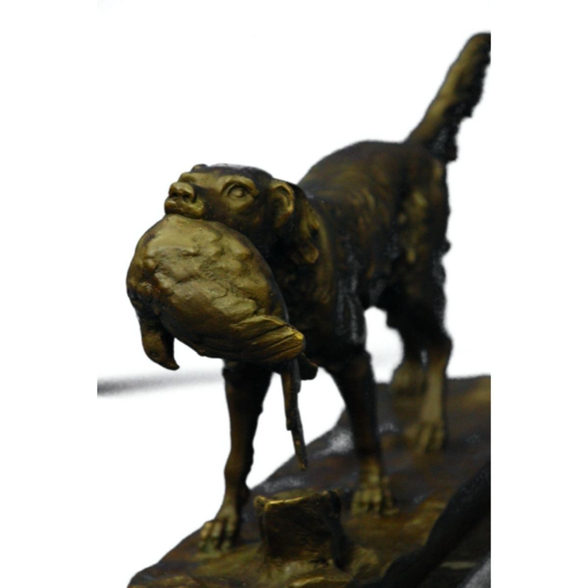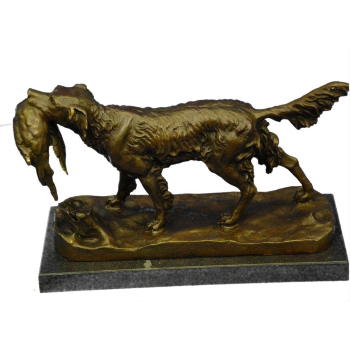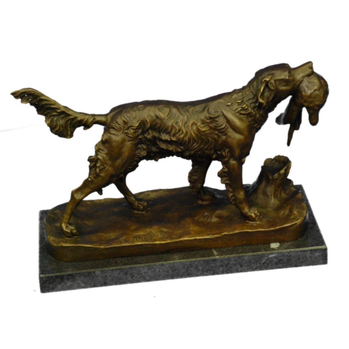 After Moignez, Hunting Dog & Quail sculpture. Lost wax casting method bronze, with brown patina, mounted on marble base. 7" H X 12" W.Â