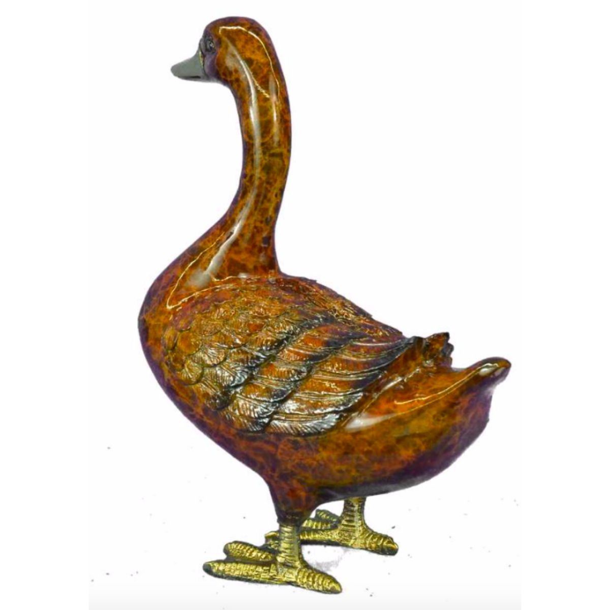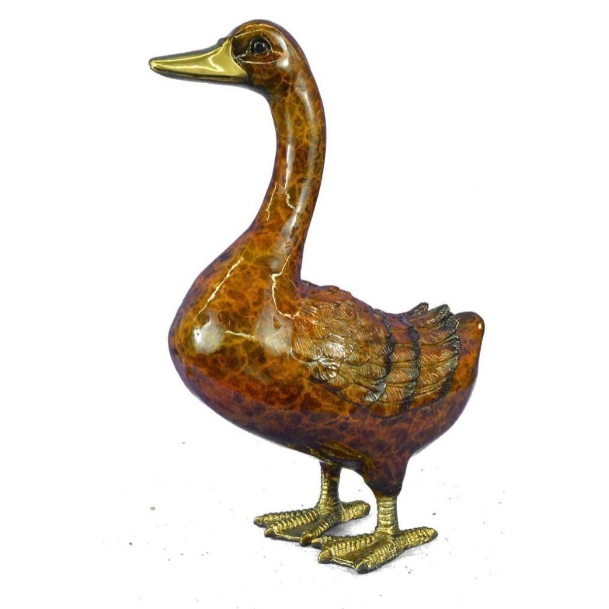 After J. Moigniez, conservatory or pool duck sculpture. Lost wax casting method bronze, with colored patina.