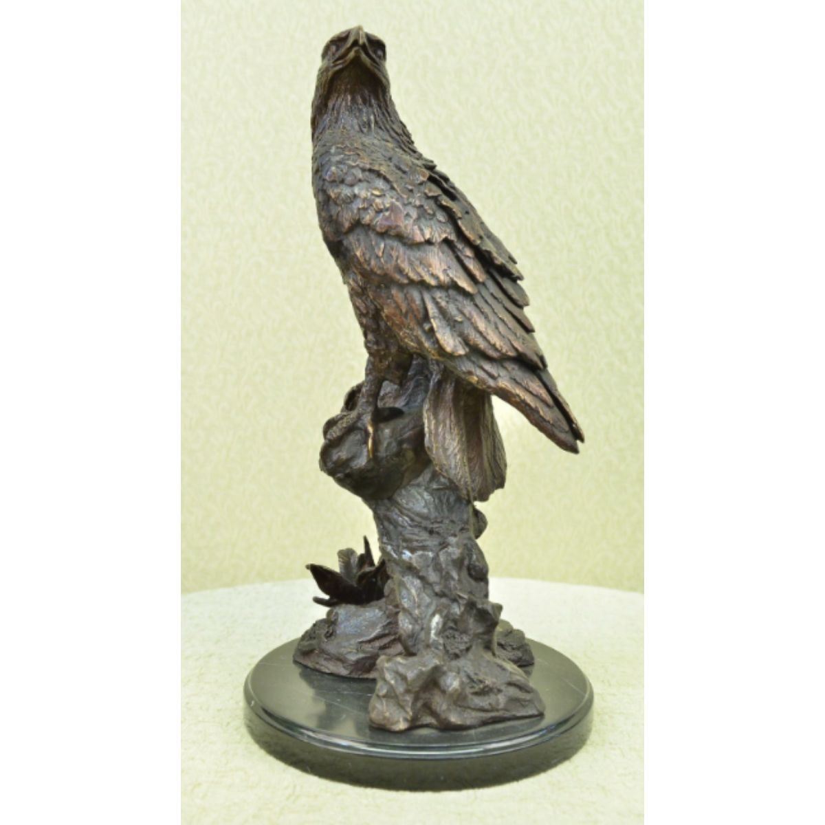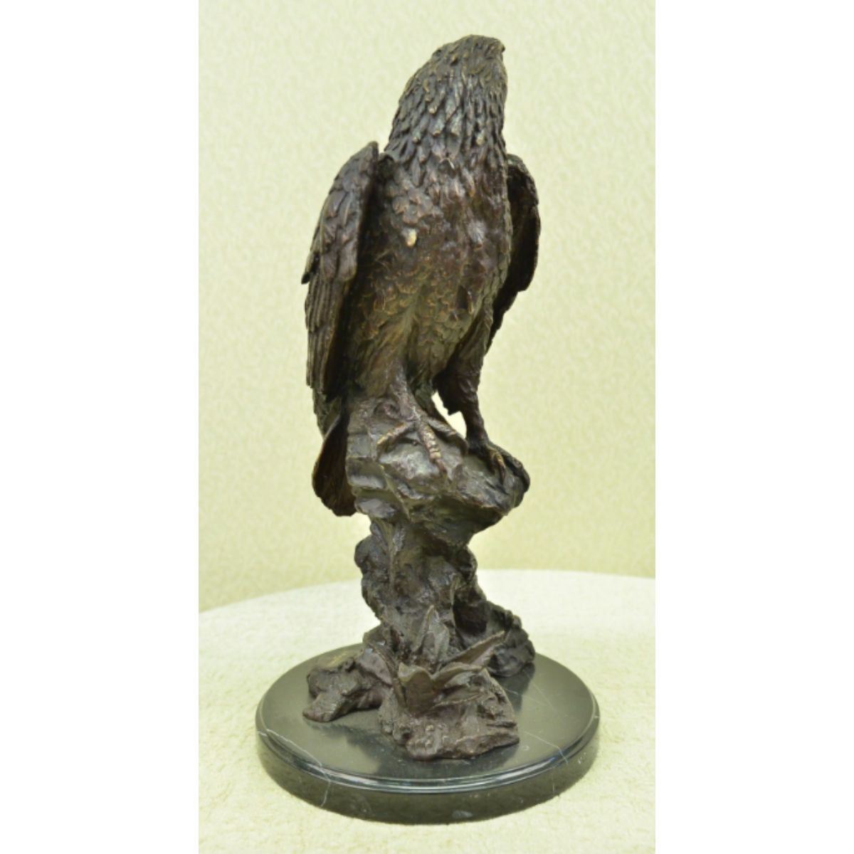 After J. Moigniez. American patriotic eagle sculpture. Lost wax casting method bronze, with brown patina, mounted on marble base. 18" H X 9" W. 22 lbs.