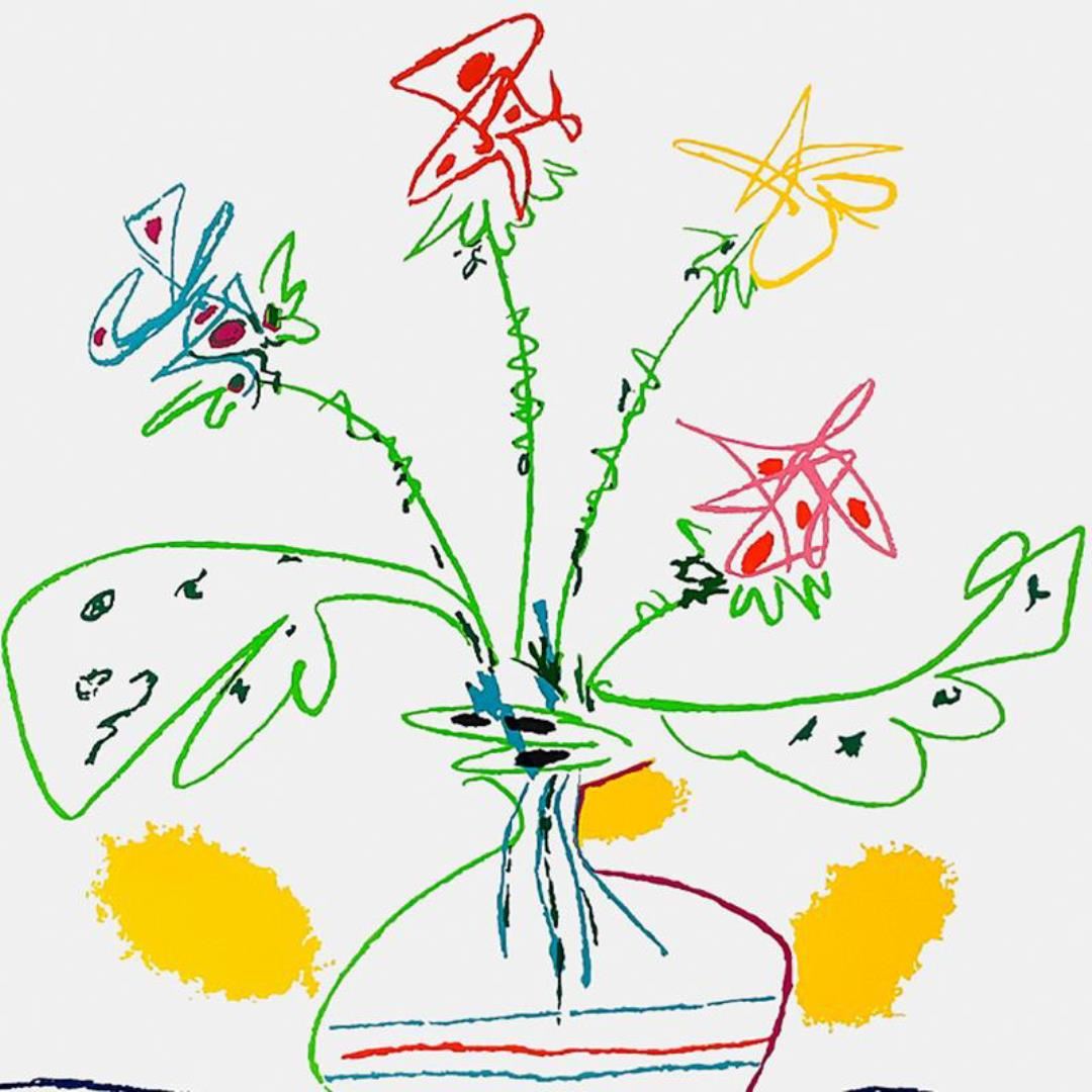 After Pablo Picasso (1881-1973) "Vase with Flowers" Print Collograph on Paper