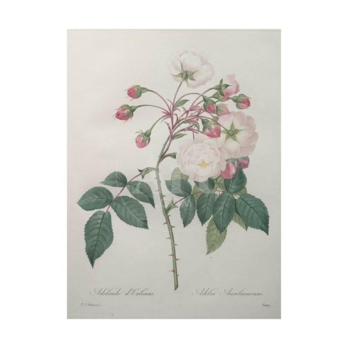 Modern print, after Pierre-Joseph Redoute ( French 1759-1840 ) Original Redoute stipple engravings with hand-coloring bring thousands of dollars per print. This modern re-print was created in the 1980's. 11" X 14". Comes with mat & backboard ready to frame. Redoute is unquestionably the best-known botanical illustrator of any era. The decorative appeal of his original engravings led to their modern reproduction, which in turn popularized Redoute's work in a way unique among botanical artists. Born into a family of artists in what is now Belgium, Redoute's talent was recognized & encouraged from an early age. Eventually, Redoute had, as pupils or patrons, five queens & empresses of France, from Marie-Antoinette to the Empress Josephine & her successor, Marie-Louise. Despite many changes of regime in a turbulent epoch, he worked without interruption, eventually contributing to over fifty works on natural history & archeology. The luminosity of stipple engraving, a technique perfected by Redoute, is particularly suited to the reproduction of botanical detail. The medium involved engraving a copper plate with a dense grid of dots that could be modulated to convey delicate gradations of color. Because the ink rested on the paper in miniscule dots, it did not obscure the "light" of the paper beneath the color. After this complicated printing process was complete, the prints were finished by hand in watercolor, so as to conform to the exquisite models Redoute provided. Â