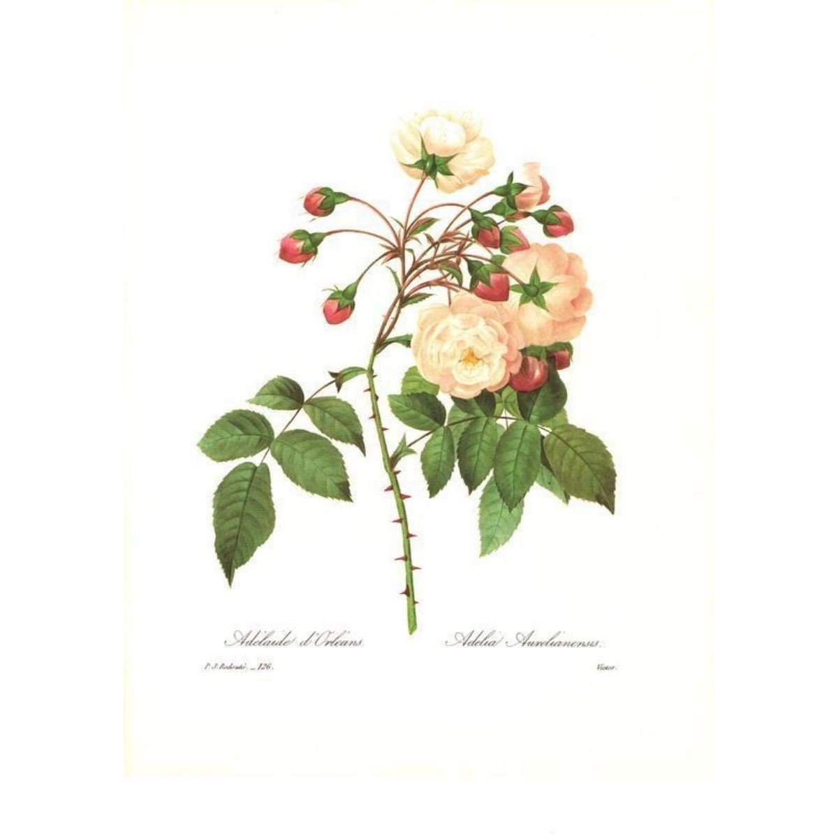 Modern print, after Pierre-Joseph Redoute ( French 1759-1840 ) Original Redoute stipple engravings with hand-coloring bring thousands of dollars per print. This modern re-print was created in the 1980's. 11" X 14". Comes with mat & backboard ready to frame. Redoute is unquestionably the best-known botanical illustrator of any era. The decorative appeal of his original engravings led to their modern reproduction, which in turn popularized Redoute's work in a way unique among botanical artists. Born into a family of artists in what is now Belgium, Redoute's talent was recognized & encouraged from an early age. Eventually, Redoute had, as pupils or patrons, five queens & empresses of France, from Marie-Antoinette to the Empress Josephine & her successor, Marie-Louise. Despite many changes of regime in a turbulent epoch, he worked without interruption, eventually contributing to over fifty works on natural history & archeology. The luminosity of stipple engraving, a technique perfected by Redoute, is particularly suited to the reproduction of botanical detail. The medium involved engraving a copper plate with a dense grid of dots that could be modulated to convey delicate gradations of color. Because the ink rested on the paper in miniscule dots, it did not obscure the "light" of the paper beneath the color. After this complicated printing process was complete, the prints were finished by hand in watercolor, so as to conform to the exquisite models Redoute provided. Â
